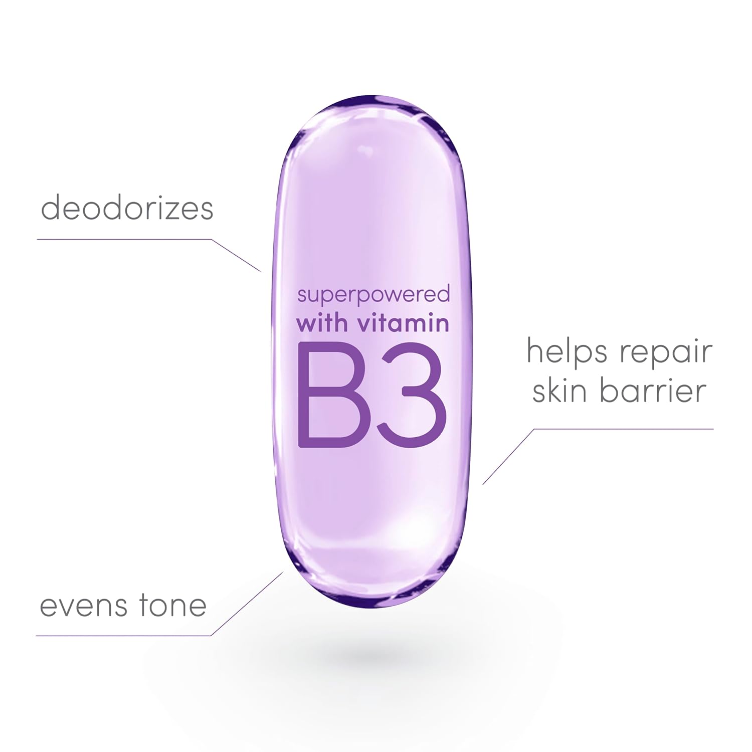 Revolutionary Vitamin Science: Dove Vitamincare+ Is Enriched With Skin-Loving Vitamin B3 (Yes, The Famous Niacinamide!). Groundbreaking Research Has Found That B3 Helps Skin’S Natural Odor Defense