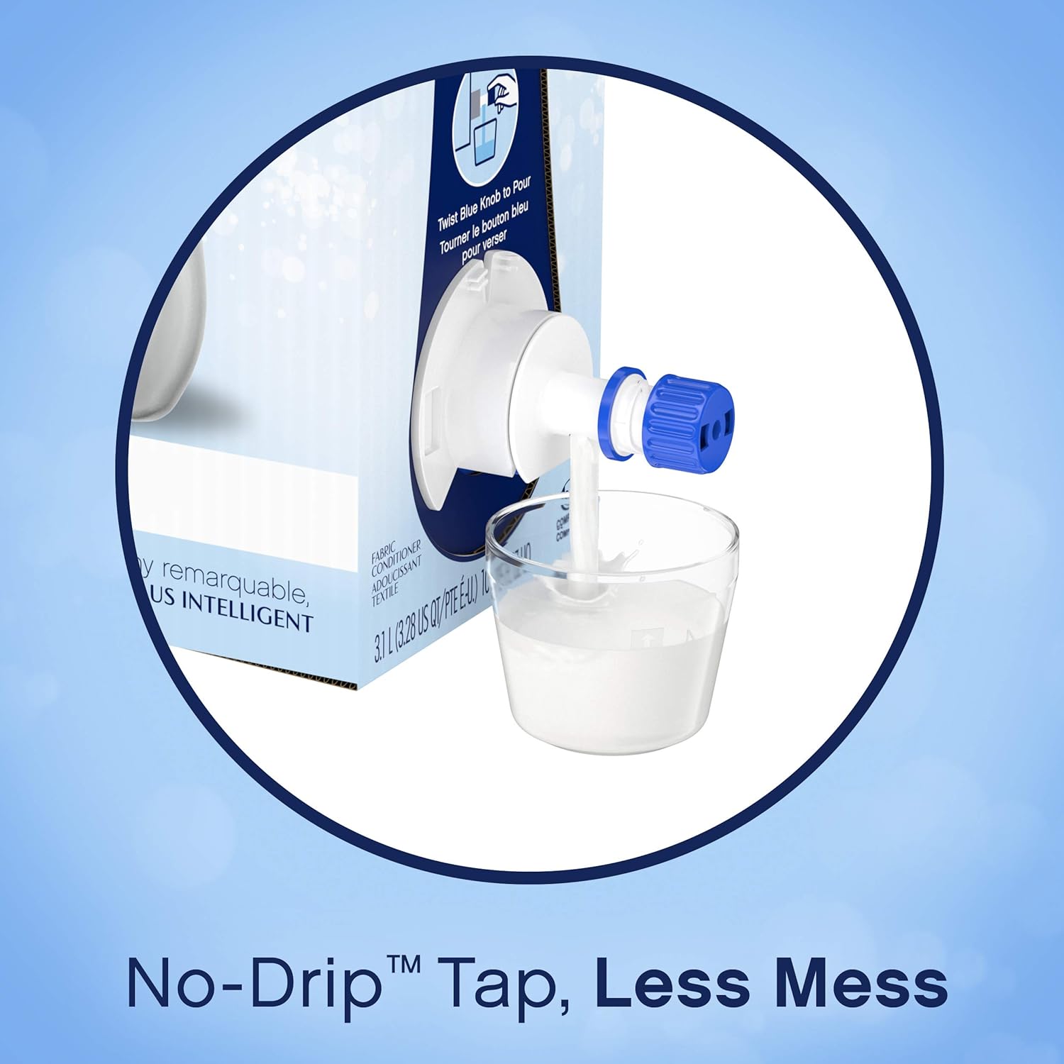 Downy Eco-Box Is The Same Liquid Fabric Softener That You Love, Now In Smarter Package! Made With 30% Less Water, Its Re-Engineered Formula Gives You More Softening Power Per Drop Than Downy Original Liquid Fabric Softener, Plus It'S Hypoallergenic, Dermatologist Tested, And Free Of Dyes And Perfumes. Smaller And Easier To Store, It'S Compressed Into A Shipping-Safe Package Made From 75% Less Plastic And Features A No-Drip Tap To Help Minimize Any Leaks And Spills. To Assemble The Downy Eco-Box Liquid Fabric Enhancer, Simply Pull The Tab On The Side Of The Pack To Reveal The Tap And Dosing Cup. But The Best Part: It'S Easy To Use! All You Have To Do Is Twist The Blue Knob Counterclockwise To Dispense The Desired Amount Of Laundry Softener Into The Dosing Cup. Make Sure To Twist Slowly So The Softener Doesn'T Come Out Too Quickly. Per Oz Vs. 2 X 51 Oz Bottles Downy Free & Gentle Liquid Fabric Conditioner (Fabric Softener) Eco-Box, He Compatible, 105 Fl Oz 180 Loads