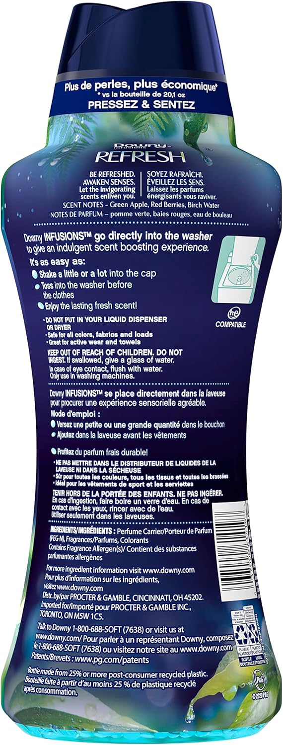 Bring More Energy To Your Laundry Routine With Downy Infusions Refresh In-Wash Scent Booster Beads. This Laundry Scent Booster'S Invigorating Scents Of Birch Water And Botanicals Will Bring A Crisp, Revitalizing Freshness To Your Clothes. Safe For All Fabrics And Washing Machines, Including He, Just Shake A Little Or A Lot Of These Scented Beads Into The Cap And Pour Directly Into The Drum Before Adding Your Clothes. For Even More Mood-Awakening Aromas, Try Refresh Scent Fabric Softener And Fabric Softener Dryer Sheets