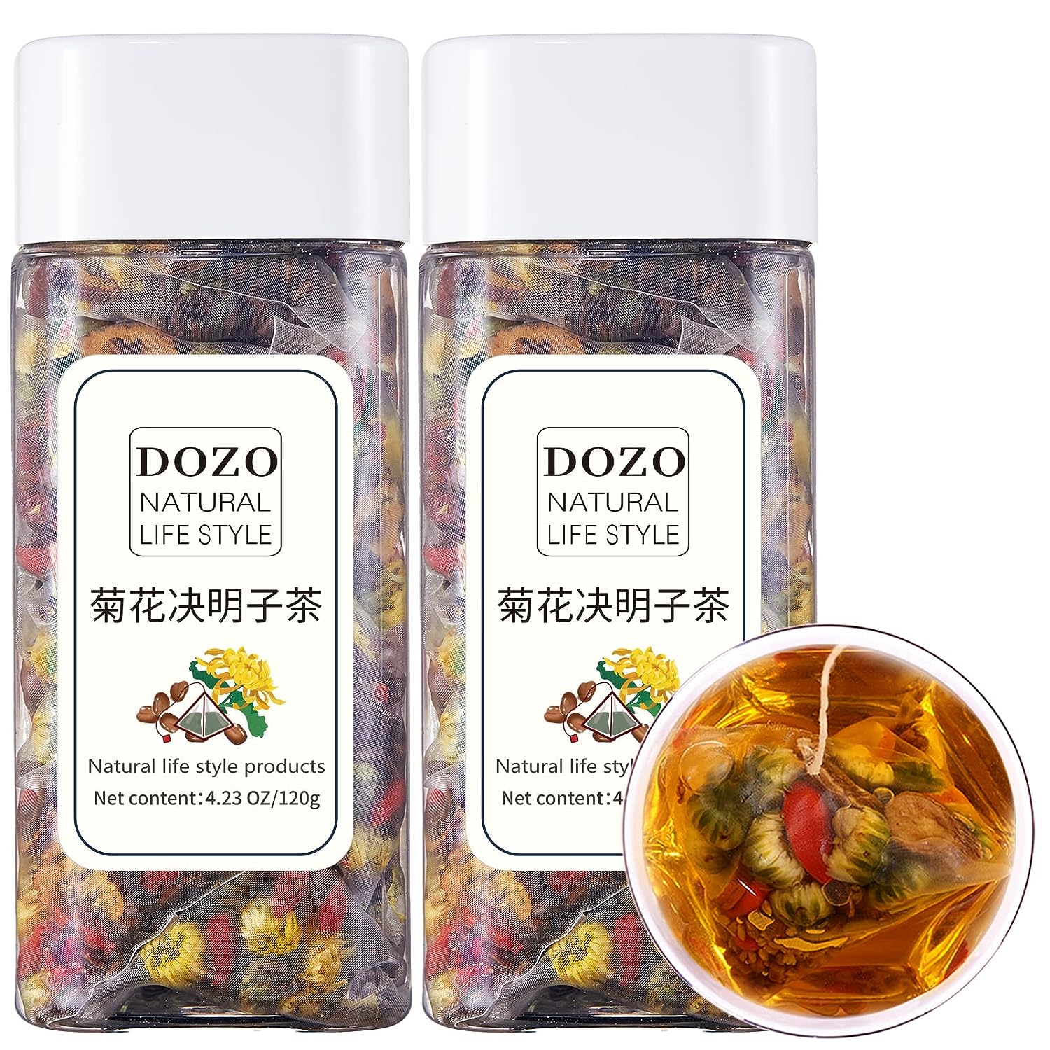 Dozo Premium Chrysanthemum Cassia Seeds Tea Bags (30Pack) Goji Berries Red Jujube Combination Tea Herbal Tea Bags No Additives