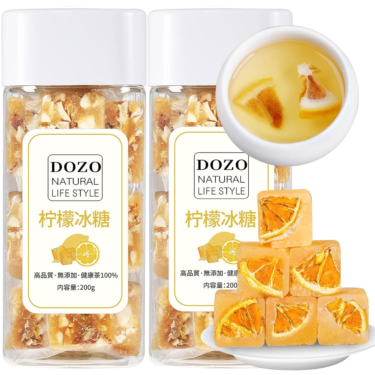 DOZO Rock Sugar Lemon Tea Lemon Honey Rock Candy 14.11oz/400g Yellow Lump Rock Sugar with Lemon Sugar Cubes Lemon Honey Candy Caffeine Free Individual Package ??????