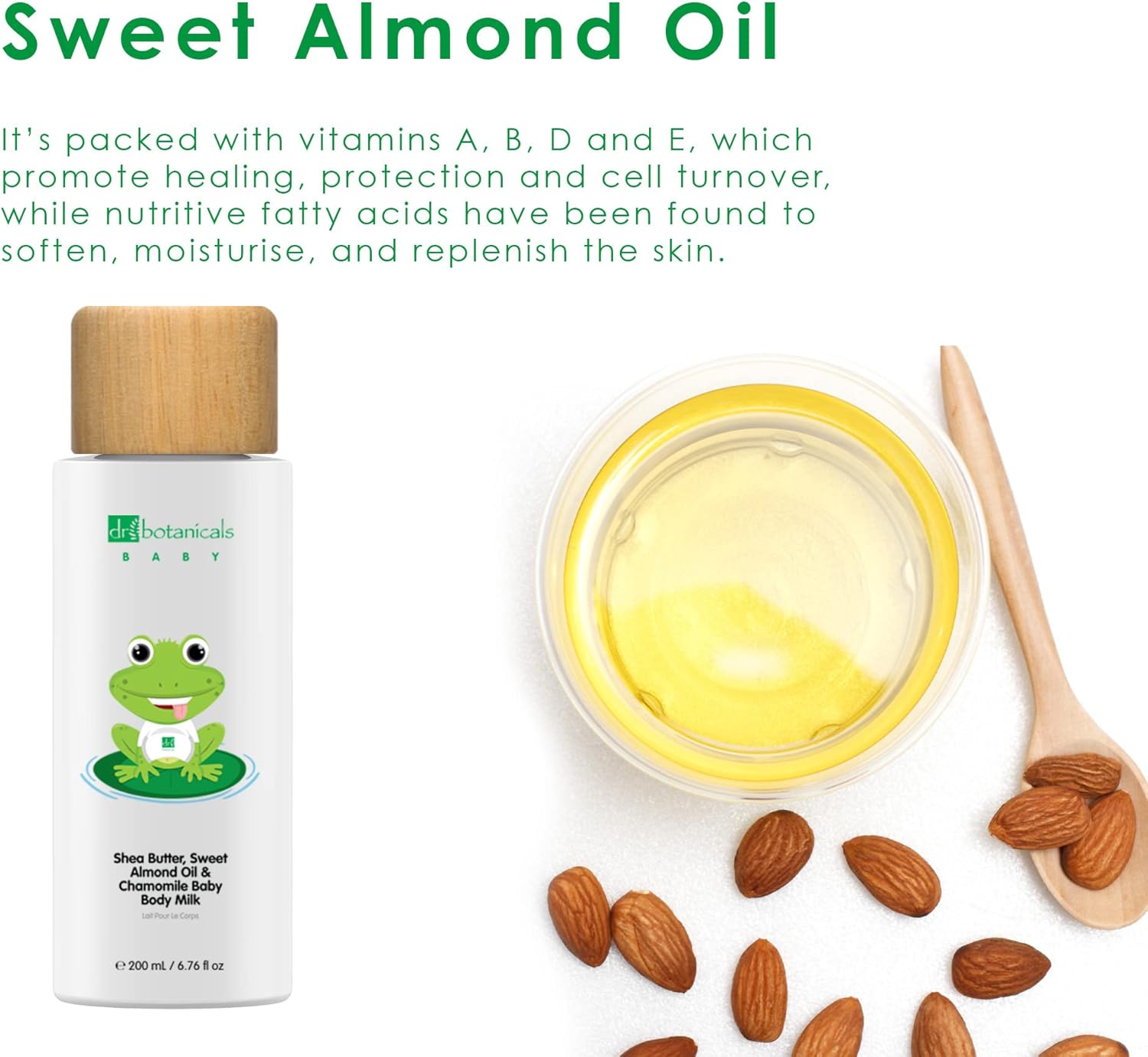 Dr Botanicals Baby Body Milk With Shea Butter, Sweet Almond Oil & Chamomile | Dermatologically Tested, 99.18% Natural, 100% Vegan | 200Ml