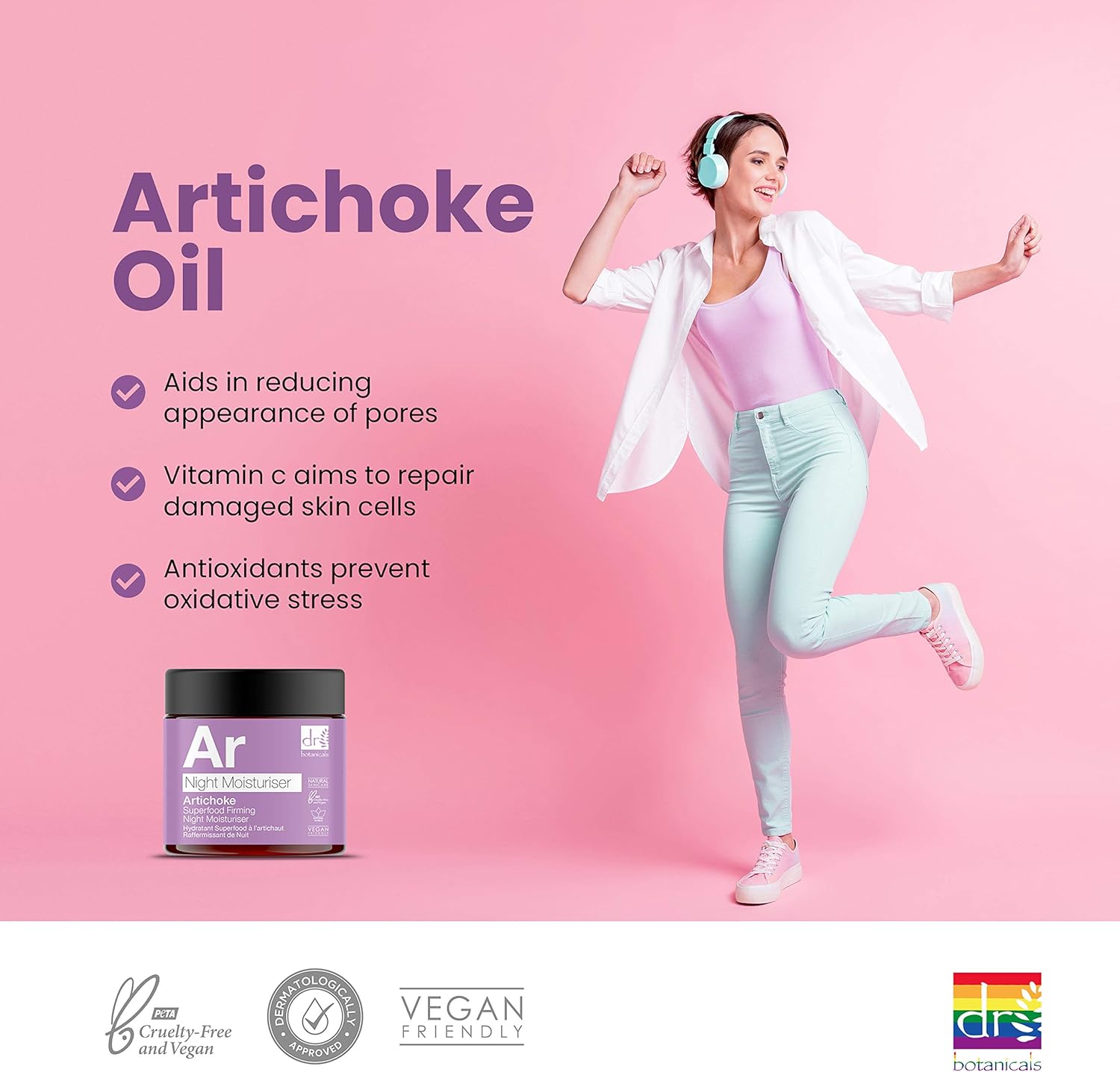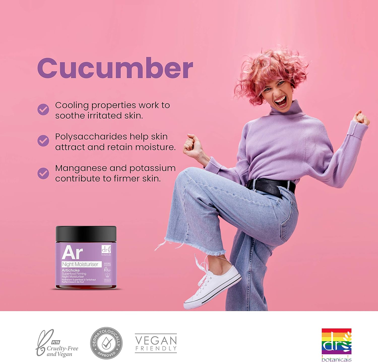 Dr Botanicals Superfood Natural & Vegan Night Moisturiser With Vitamins, Artichoke & Cucumber. Improves Skin Tone, Texture. Gives Youthful Skin. Suitable For Dry, Oily, Combination Skin. 60Ml