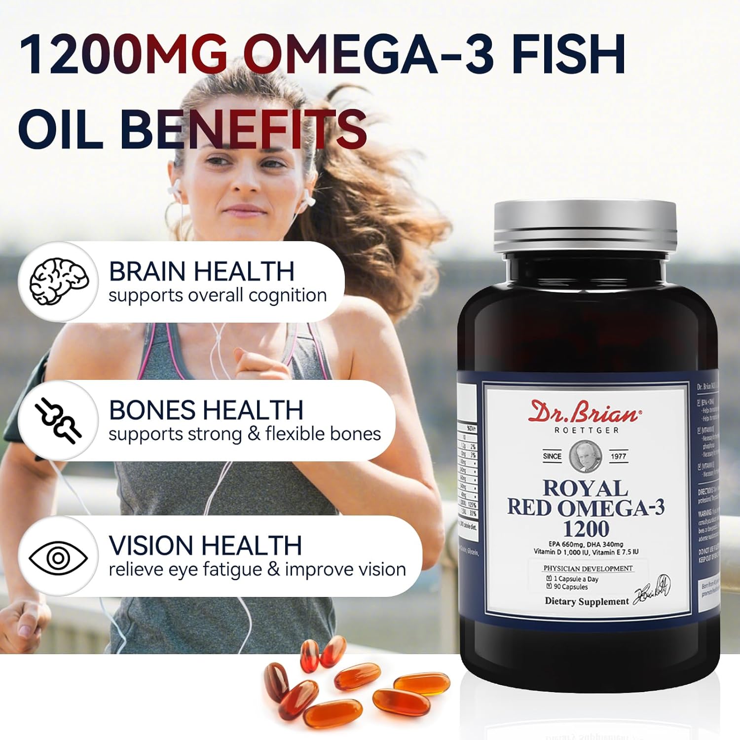 Dr. Brian Royal Red Omega 3 1200, Fish Oil Supplement With Epa And Dha Omega3 Fish Oil Contain Vitamin D,E Omega-3 Support For Physical Health - 90 Soft Gels