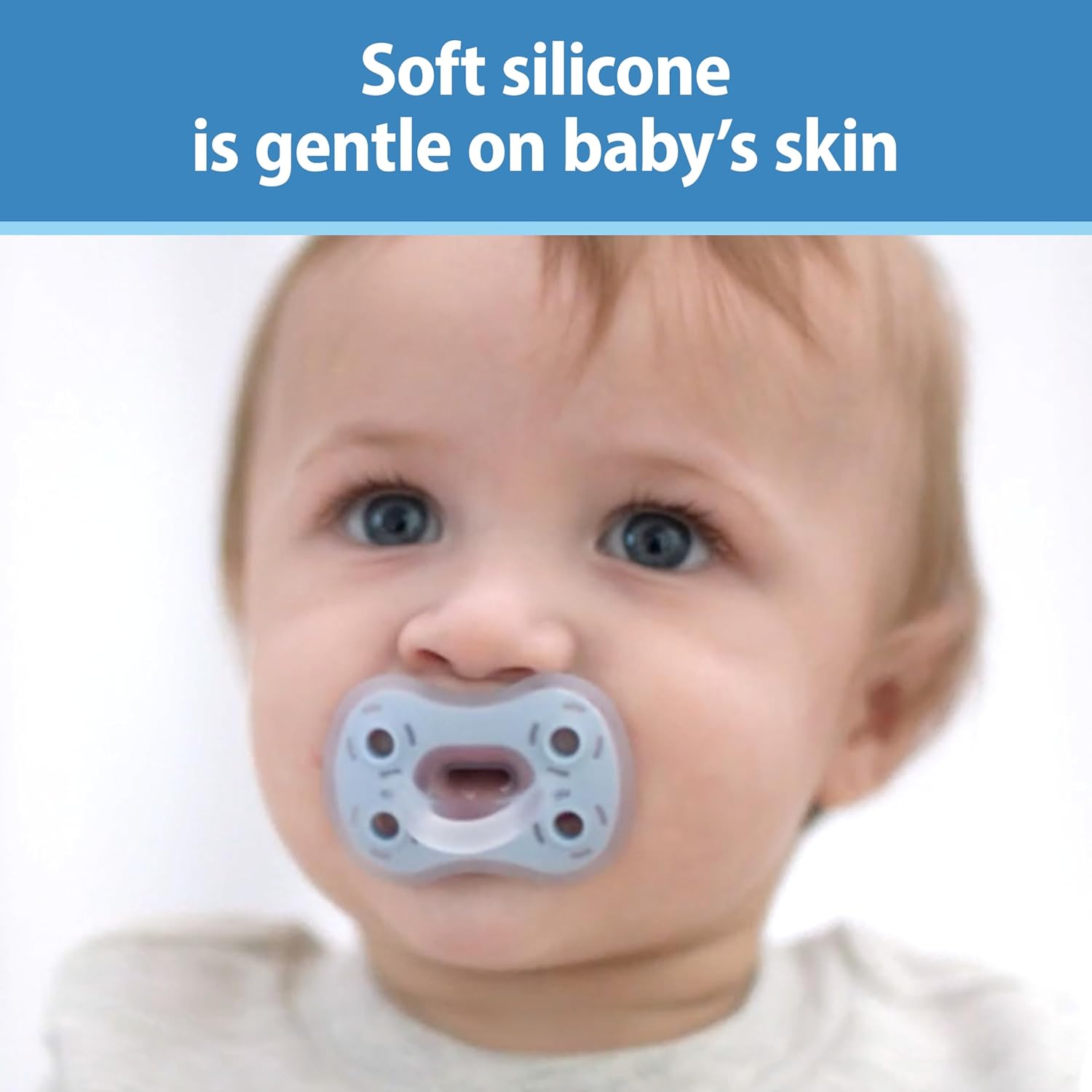 SOFT SILICONE ONE-PIECE SOOTHER. The one-piece silicone pacifier is made with soft silicone that's gentle on baby's skin