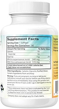 Package Dimensions :  80 Count Item Form Softgel Item Weight 0.13 Kilograms Product Benefits Brain Health Support Package Information Bottle Number of Items 1 Servings per Container 80 Dosage Form Softgel Manufacturer Dr. Clark Store