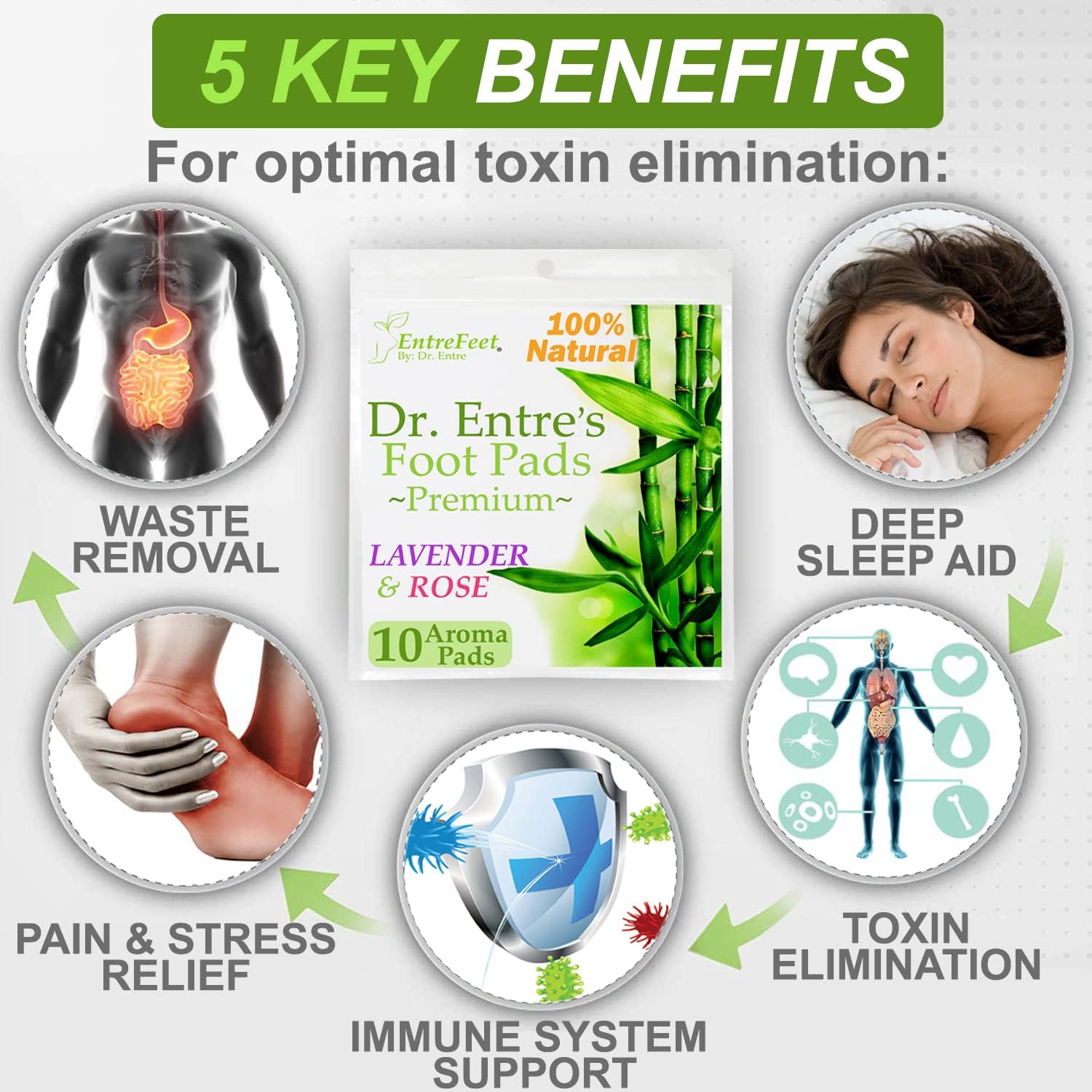 Dr. Entre'S Detox Foot Patches: All Natural Detox Foot Pads To Remove Body Toxins, Pain Relief, Sleep Aid | Deep Cleansing Foot Detox Patches, 10 Pack