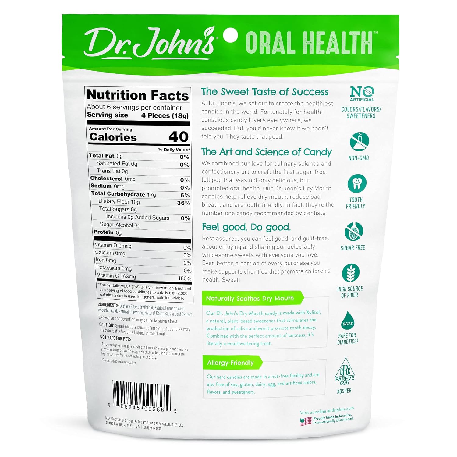 Soothing Relief for Dry Mouth: Dr. John's Dry Mouth Drops offer a delightful solution to dry mouth discomfort. Specially formulated to provide soothing relief, stimulate saliva production and fight bad breath!