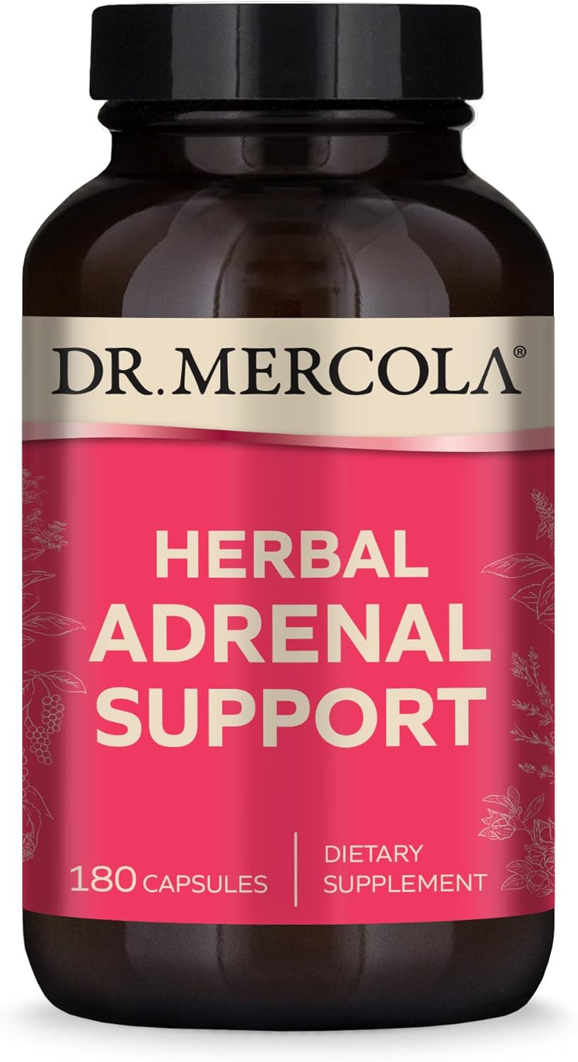 Dr. Mercola Herbal Adrenal Support Dietary Supplement, 90 Servings (180 Capsules), Mood & Stress Management, Non GMO, Soy Free, Gluten Free