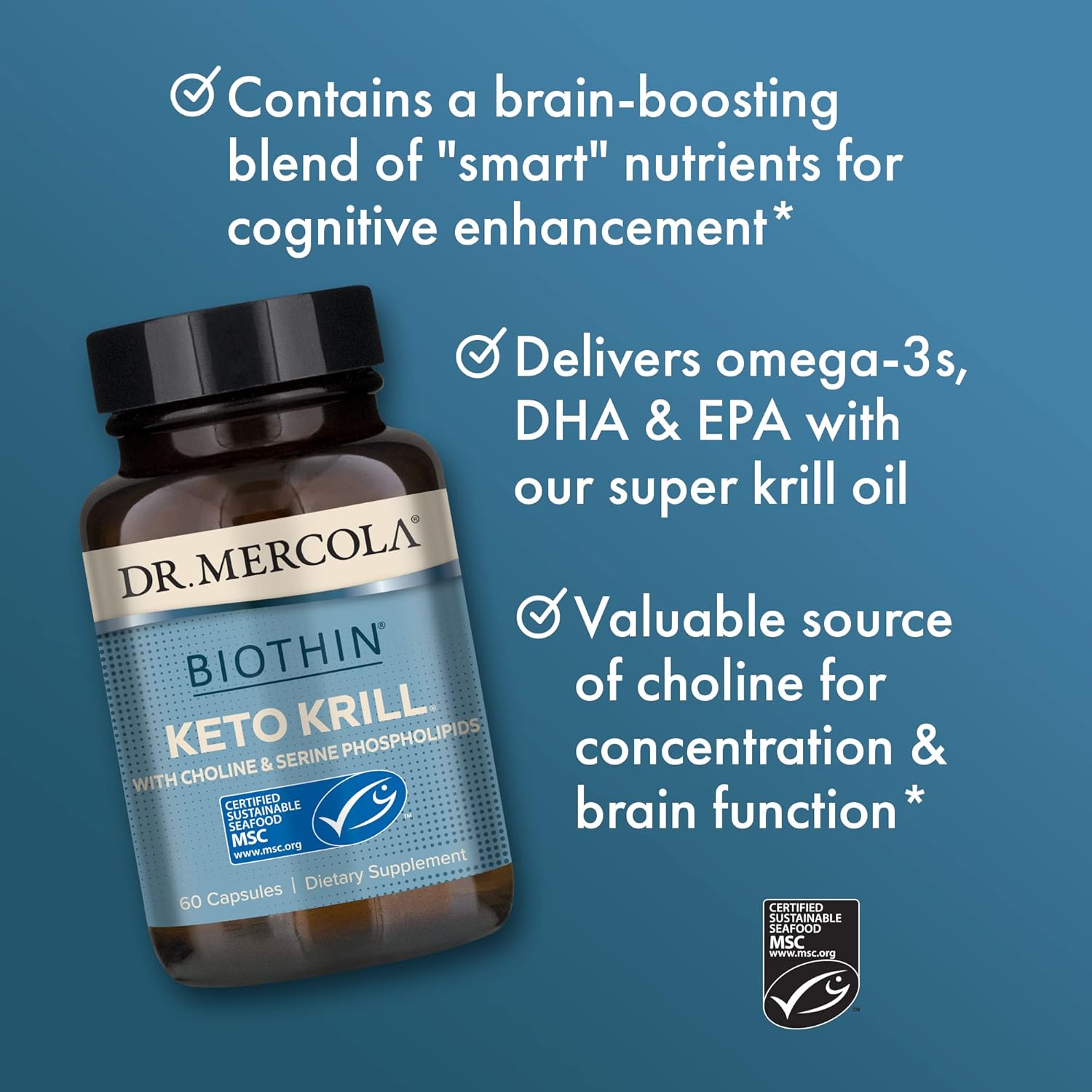 Dr. Mercola, Keto Krill Oil Supplement, 30 Servings (60 Capsules), Omega 3 Fatty Acids, Msc Certified, Non Gmo, Soy-Free, Gluten Free