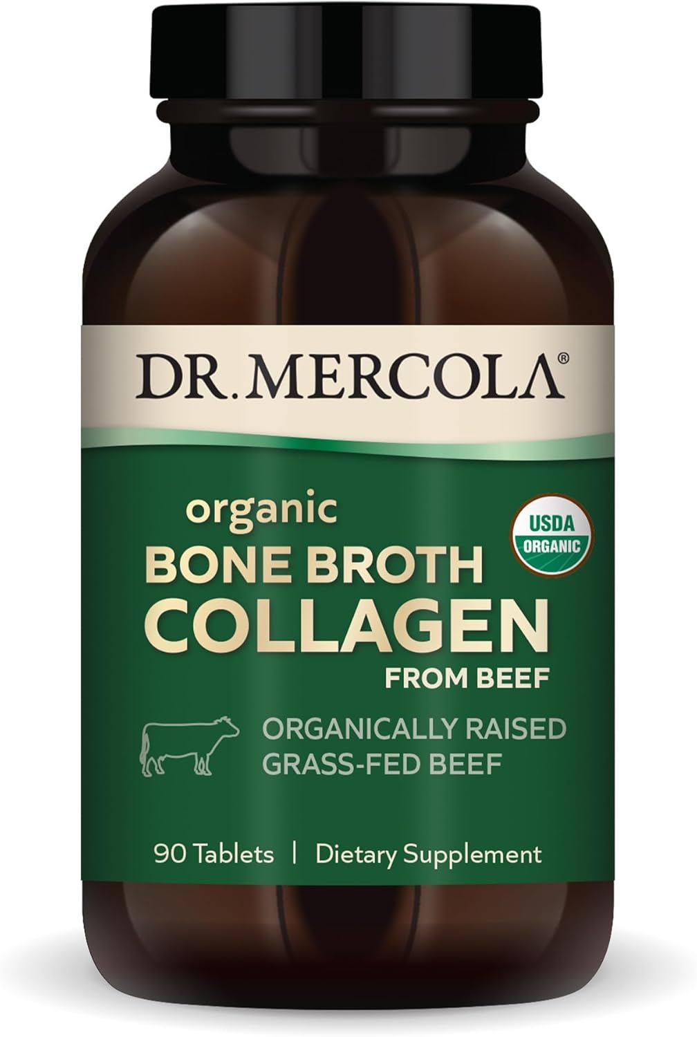 Dr. Mercola Organic Bone Broth Collagen, 30 Servings (90 Tablets), Organically Raised Grass-Fed Beef, Dietary Supplement, Supports Bone And Joint Comfort, Usda Organic, Non-Gmo