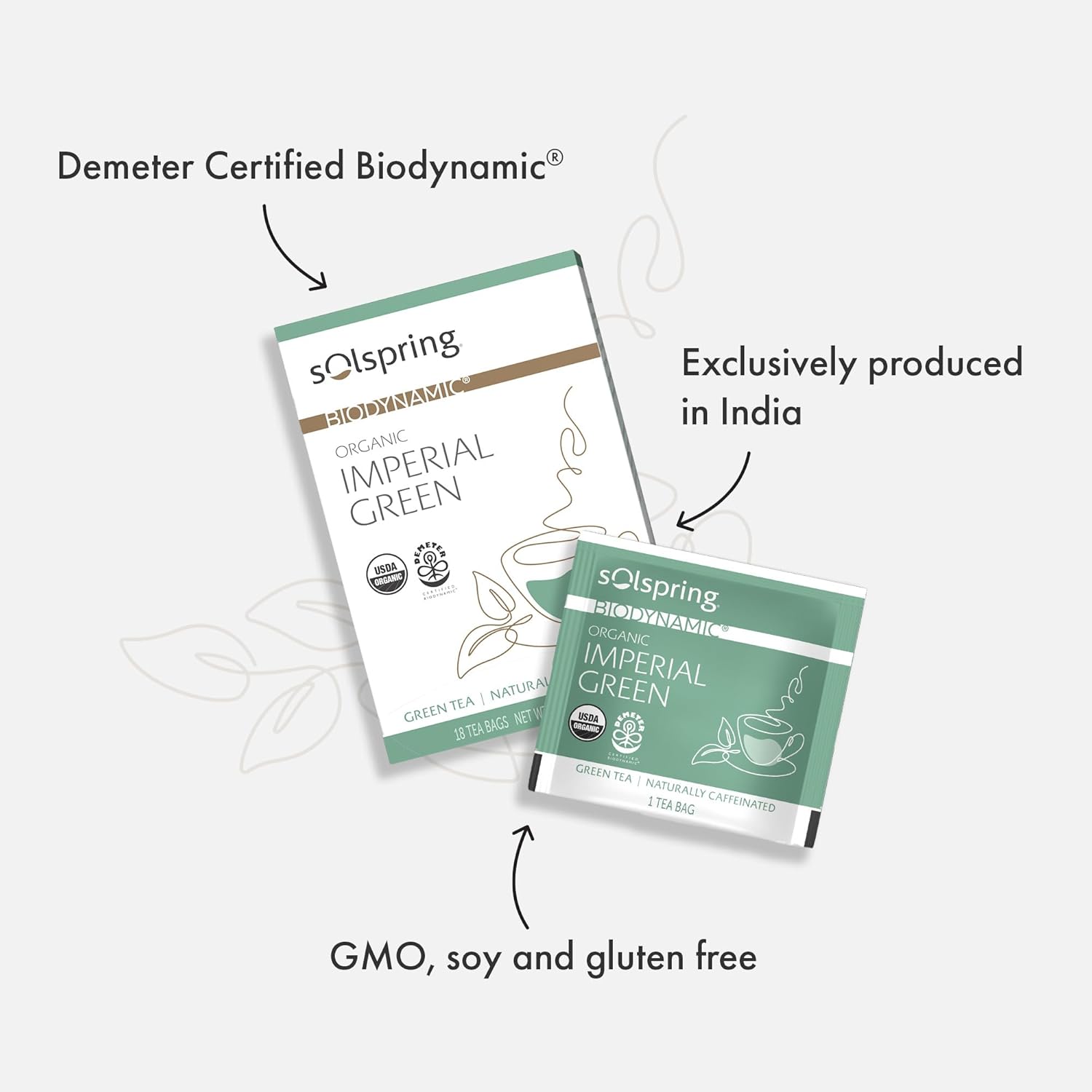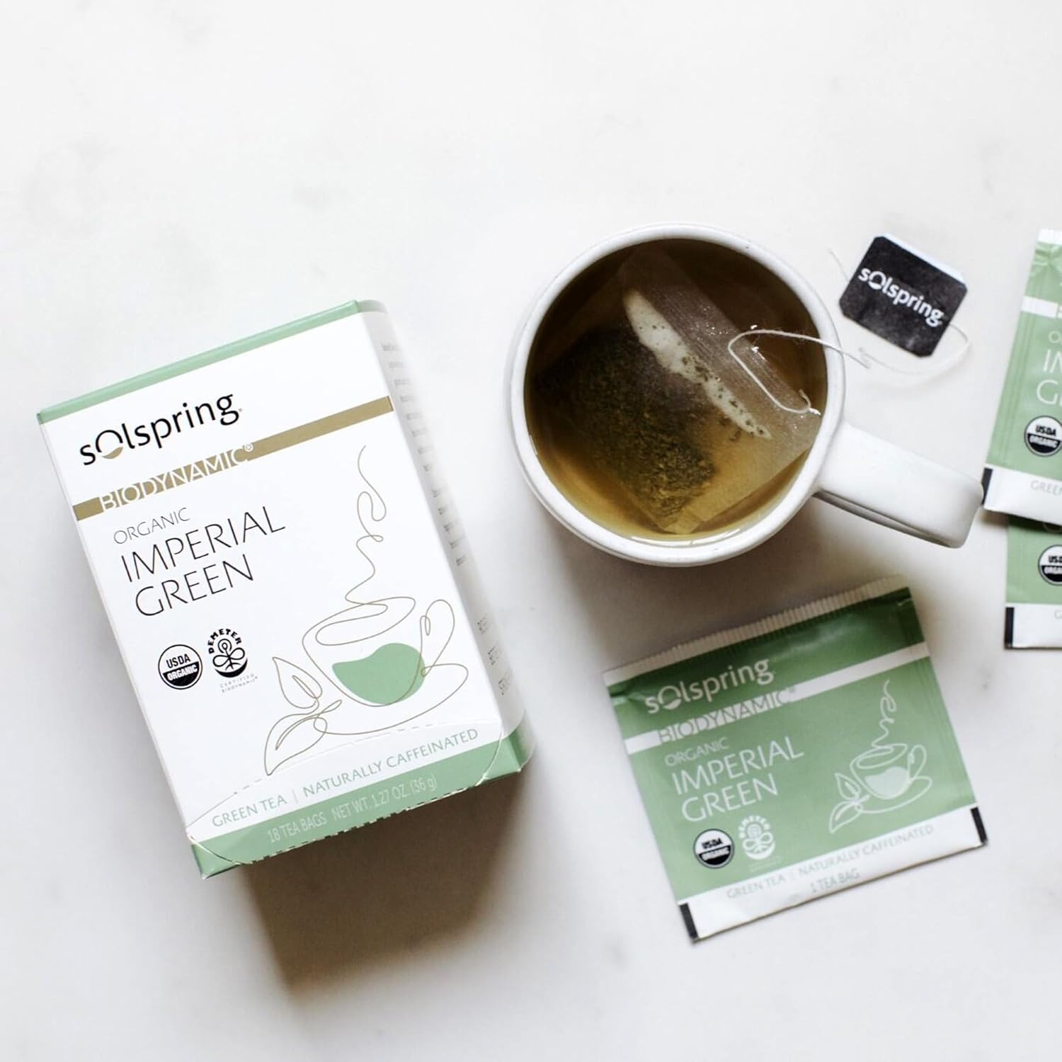 Dr. Mercola Solspring Biodynamic Organic Imperial Green Tea, 18 Tea Bags (Pack Of 3) Light And Crisp Flavor, Naturally Contains Free, Non Gmo, Gluten Free, Soy Free, Usda Organic, Demeter Certified Biodynamic
