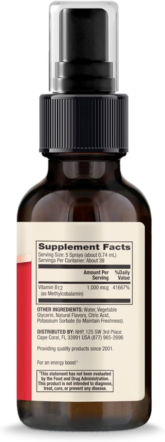 Each Bottle of Methyl Vitamin B12 Energy Boost Spray Contains 39 Servings, 0.98 FL. oz (29 mL)