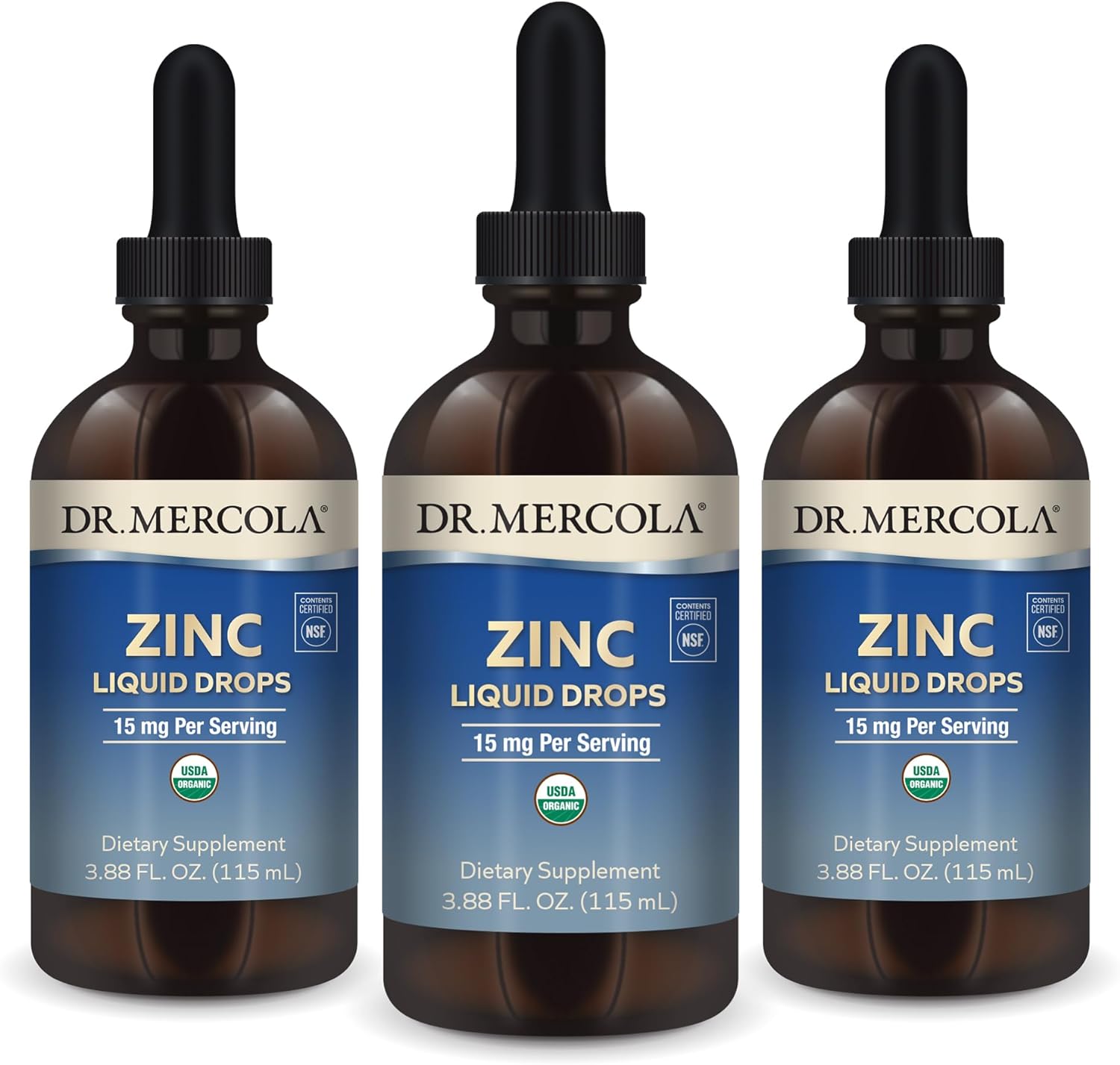 DESCRIPTION : Dr. Mercola Zinc Liquid Drops, 3.88 Fl. Oz. (115 mL), 3-Pack (About 84 Servings), Dietary Supplement, 15mg Per Serving, Immune Support & Cognitive Function, Certified USDA Organic