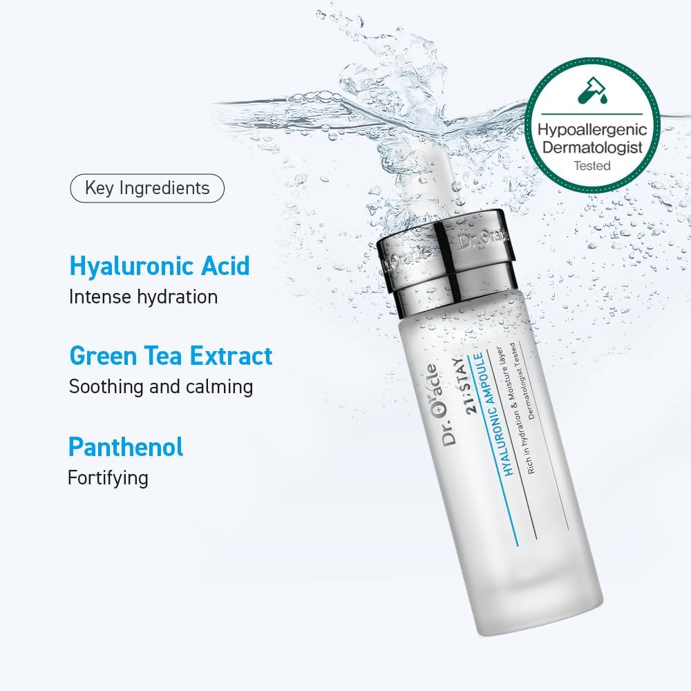 Dr.Oracle Ampoule Hyaluronic Acid Serum For Face Korean Skin Care - Moisturizer Essence Anti-Aging Serum, Intense Hydration Moisturizing K Beauty (0.57O.Z), Dermatologist Tested 21 Stay
