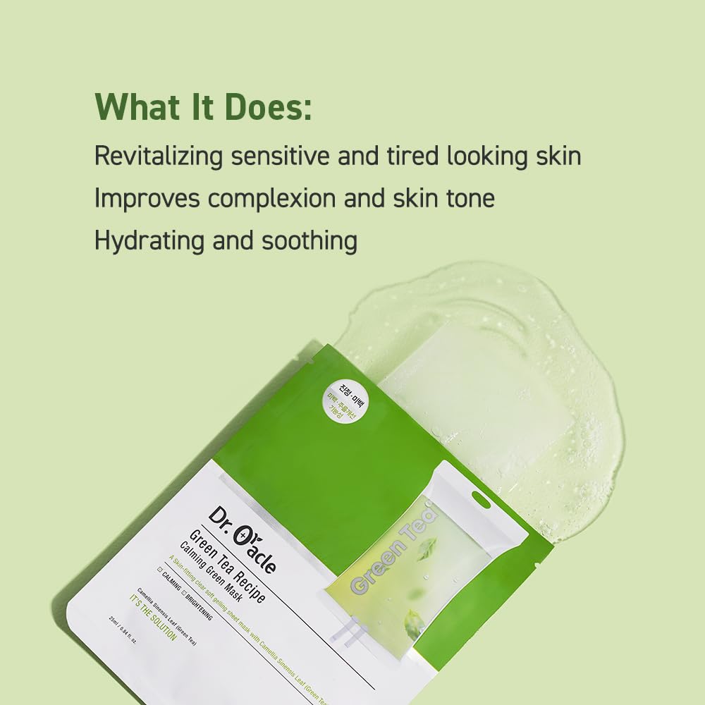 Dr.Oracle Green Tea Recipe Calming Green Mask, Camellia Sinensis Leaf, Special K-Beauty Face Care, 250Ml (8.4 Fl. Oz.), 1 Box - 10 Sheets