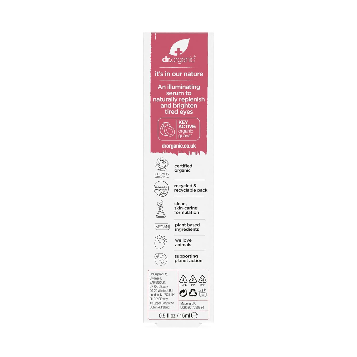 NOURISHING CARE: Brightens and hydrates tired under-eyes with organic guava extract, leaving the skin refreshed, moisturized, and radiant,NOURISHING CARE: Brightens and hydrates tired under-eyes with organic guava extract, leaving the skin refreshed, moisturized, and radiant,PURE INGREDIENTS: Enriched with organic guava, a natural source of Vitamin C, to brighten, nourish, and rejuvenate the delicate eye area,GENTLE FORMULA: Fragrance-free and suitable for all skin tones, this lightweight serum is perfect for combination skin and daily use,ECO-CONSCIOUS: Packaged in a fully recyclable HDPE tube and FSC-certified cardboard, supporting eco-conscious skincare,ETHICAL STANDARDS: Certified organic, vegan, and cruelty-free with no parabens, SLS, synthetic colors, or harsh chemicals