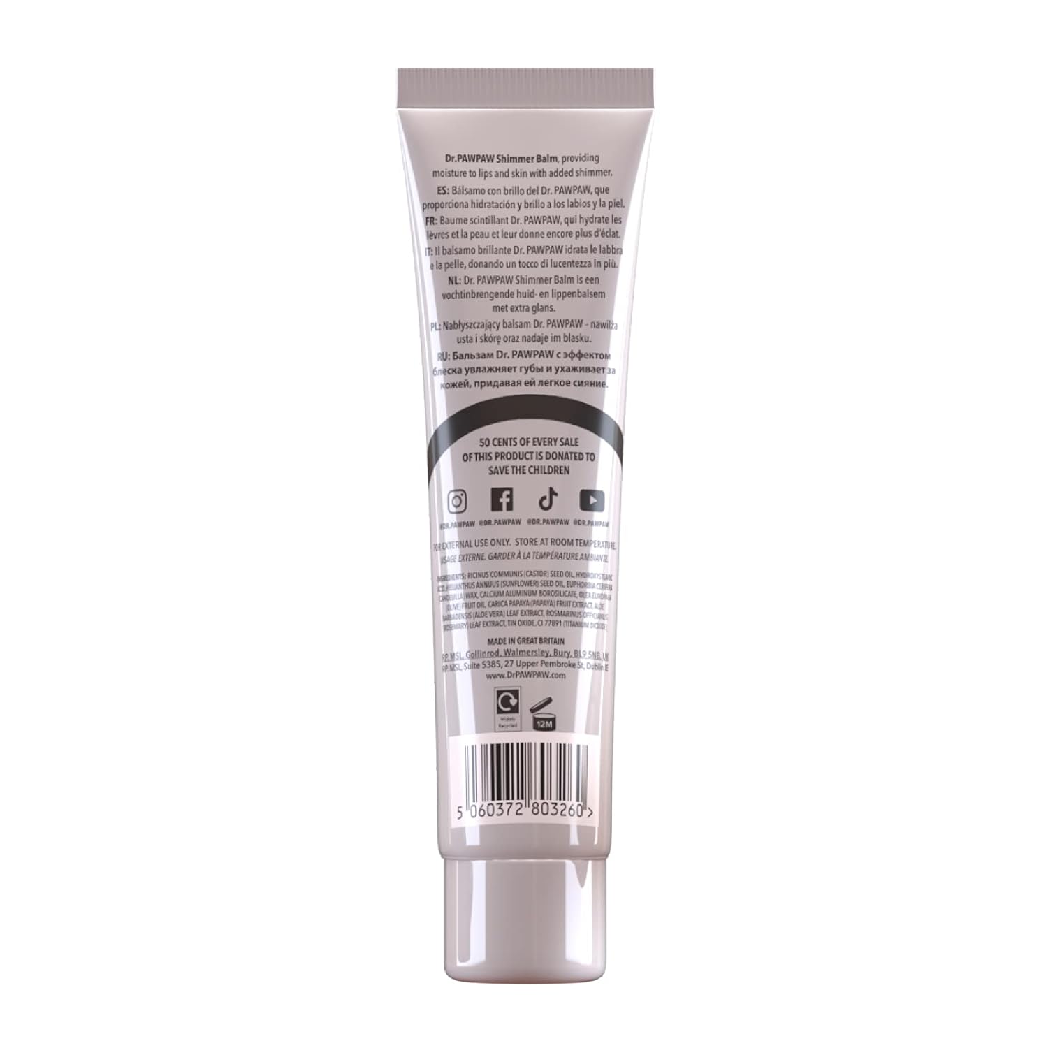 Versatile Glow Enhancer: Elevate your beauty routine with Dr PAWPAW's Shimmer Balm, perfect for adding a pearlescent shimmer to lips, cheekbones, and dƩcolletage