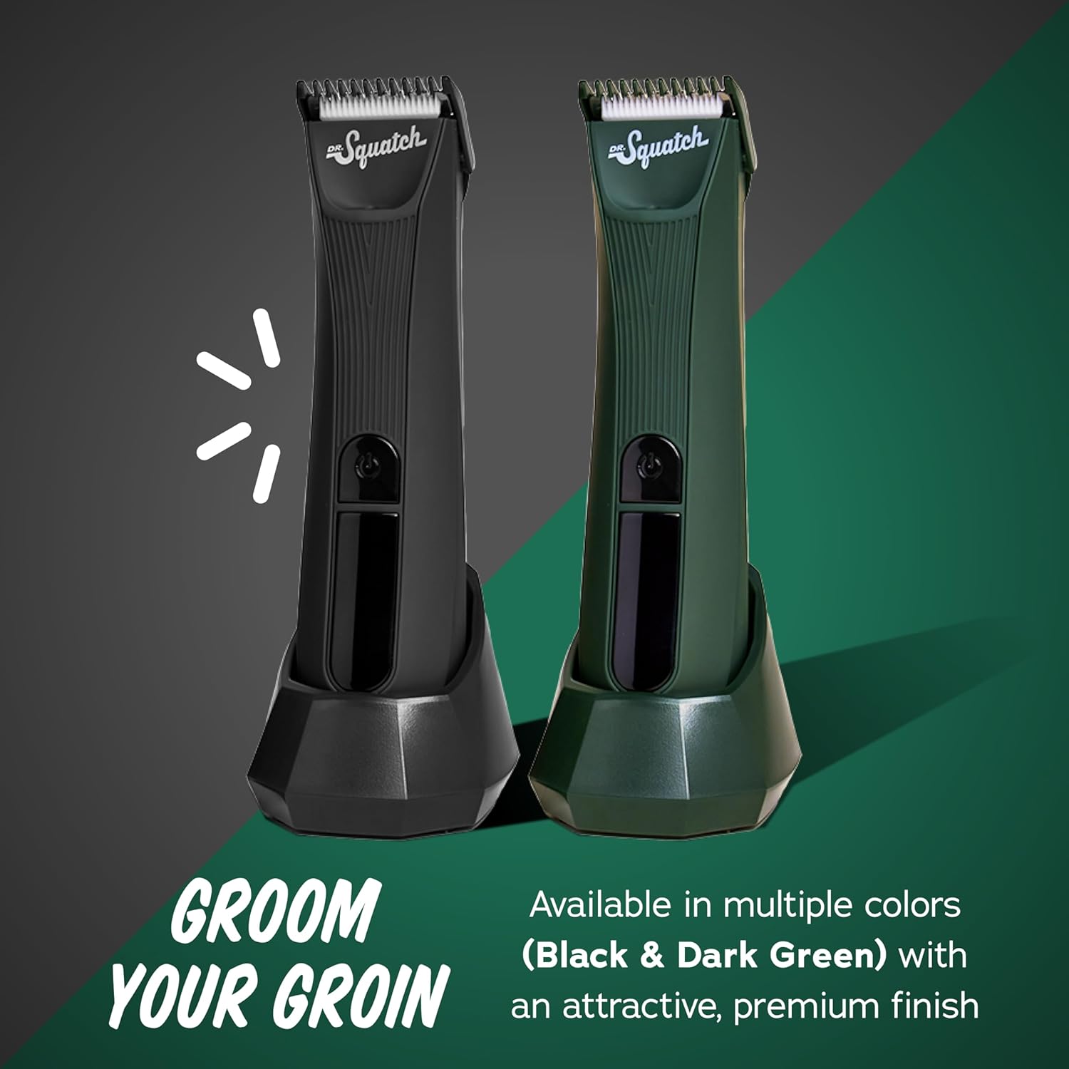 About this item GROOM YOUR GROIN, chest, pits, or anywhere else your heart desires. Precision ceramic blades engineered with Squatch-Shield Technology to help prevent nicks and cuts for a smooth, worry-free trim. Upgrade your shower routine today with the Dr. Squatch’s NEW Groin Guardian Trimmer in Green! DERMATOLOGIST TESTED - Safe for even the most sensitive Squatch man parts. OPTIMIZED VERSATILITY - All over balls & body use. The one and only trimmer you’ll ever need for your whole entire manly bod. DURABLE & DEPENDABLE - We didn’t cut any corners making this high-performance trimmer. ERGONOMIC - You’ll love how this "no slip" grip handles › See more product details,GROOM YOUR GROIN, chest, pits, or anywhere else your heart desires. Precision ceramic blades engineered with Squatch-Shield Technology to help prevent nicks and cuts for a smooth, worry-free trim. Upgrade your shower routine today with the Dr. Squatch’s NEW Groin Guardian Trimmer in Green!,DERMATOLOGIST TESTED - Safe for even the most sensitive Squatch man parts,OPTIMIZED VERSATILITY - All over balls & body use. The one and only trimmer you’ll ever need for your whole entire manly bod,DURABLE & DEPENDABLE - We didn’t cut any corners making this high-performance trimmer,ERGONOMIC - You’ll love how this "no slip" grip handles