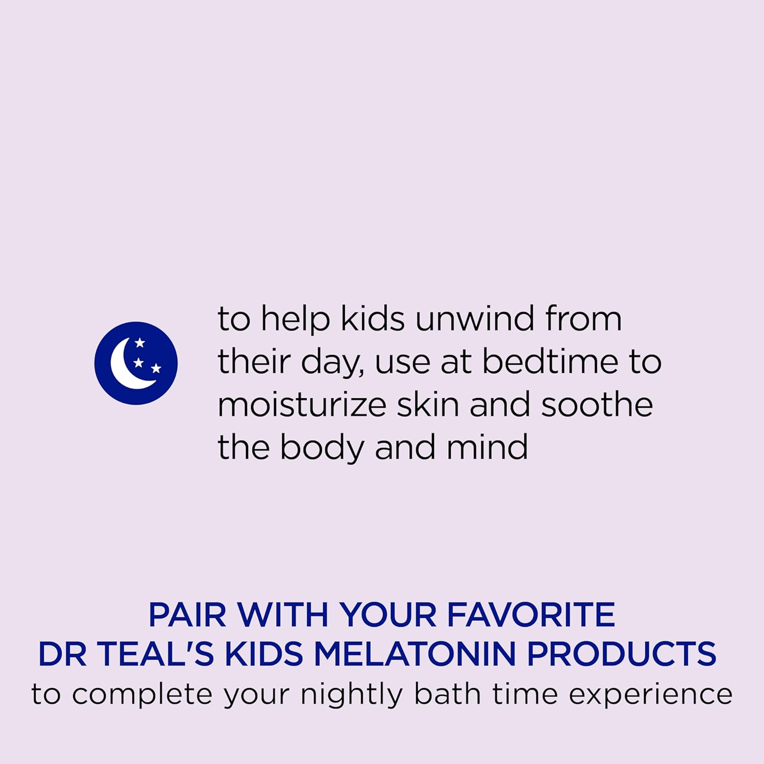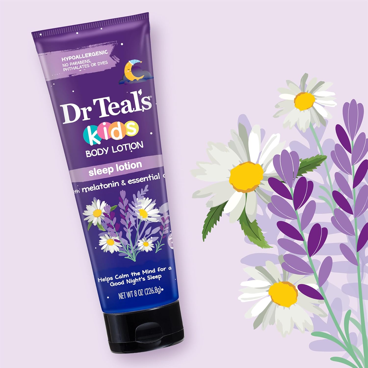 Help Your Kids Relax At Bedtime With Dr Teal'S Kids Sleep Body Lotion With Melatonin & Essential Oil Blend. We Created Our Hypoallergenic Formula With Calming Essential Oils To Help Your Child Wind Down At The End Of The Day. Aloe And Oat Extract Gently Soothe And Moisturize Your ChildâS Skin While Helping Them Relax. A Blend Of Melatonin And Essential Oils Help Calm The Mind & Encourage Relaxation. Simply Massage The Lotion On To Help Your Child Relax And Prepare For A Good NightâS Sleep. Dr Teal'S Kids Sleep Body Lotion With Melatonin & Essential Oils Is Paraben-Free, Phthalate-Free, And Cruelty-Free. Pair With Other Products From The Dr Teal'S Kids Sleep Line To Help Enhance Your Nighttime Routine