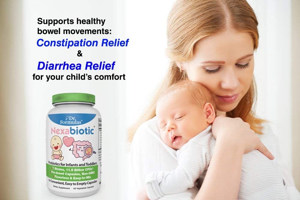 About this item Nexabiotic Probiotic Powder for Babies and Kids features prebiotic and the probiotics Saccharomyces boulardii, Lactobacillus acidophilus, and Bifidobacterium animalis lactis (formerly B. infantis), and 20 other probiotic strains. Nexabiotic Probiotic Powder in capsules are easy to take apart & mix in your kids' food & drinks. Flavorless so babies, infants & kids won't even know its there! Supports baby immune systems. Supports regular bowel movements and stools. Soothess & eases colic. Specially designed probiotic powder for infants, babies, toddlers, and kids. Provides a potent boost of probiotics and prebiotics to your baby's diet. More CFUs and probiotics than gripe water and probiotic drops. Made in the USA in a FDA inspected NSF GMP facility. Your child's safety is our priority. See more product details,Nexabiotic Probiotic Powder for Babies and Kids features prebiotic and the probiotics Saccharomyces boulardii, Lactobacillus acidophilus, and Bifidobacterium animalis lactis (formerly B. infantis), and 20 other probiotic strains,Nexabiotic Probiotic Powder in capsules are easy to take apart & mix in your kids' food & drinks. Flavorless so babies, infants & kids won't even know its there!,Supports baby immune systems. Supports regular bowel movements and stools. Soothess & eases colic. Specially designed probiotic powder for infants, babies, toddlers, and kids,Provides a potent boost of probiotics and prebiotics to your baby's diet. More CFUs and probiotics than gripe water and probiotic drops,Made in the USA in a FDA inspected NSF GMP facility. Your child's safety is our priority