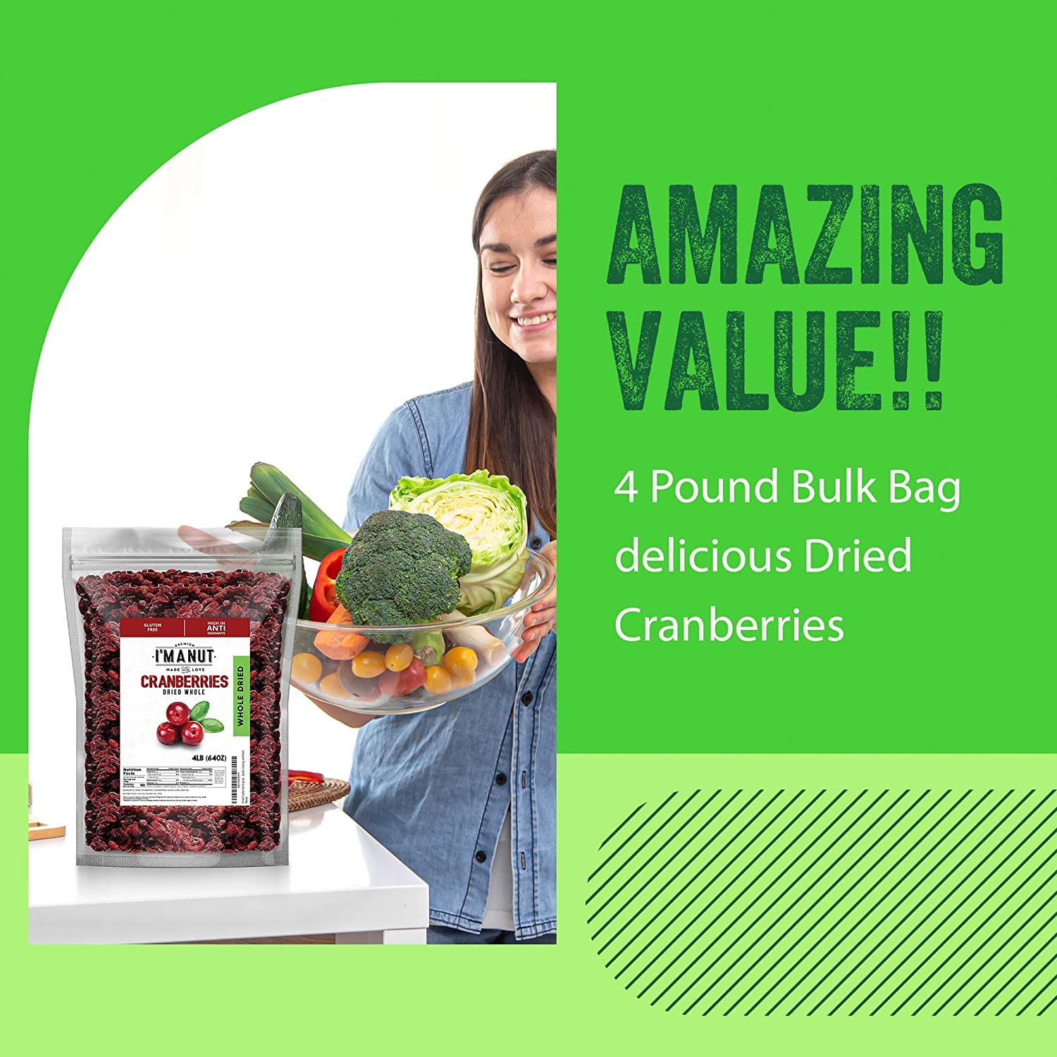 Dried Cranberries Original 2 Pound (32 Oz) Batch Tested Gluten & Peanut Free | Resealable Bag | High In Antioxidant | Great For Salads, Cooking And Mixes | Sweetened