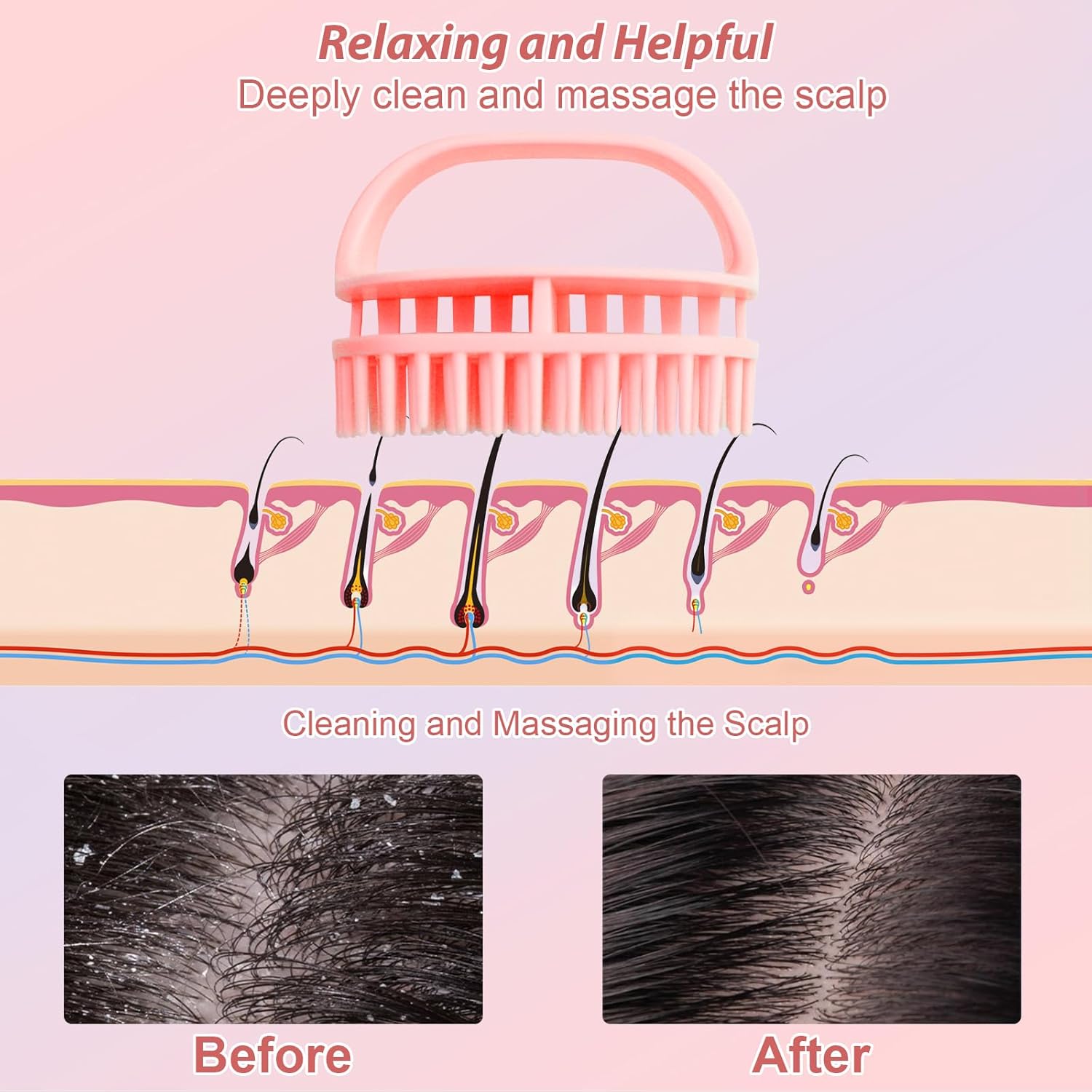 DOUBLE-LAYER SILICONE DESIGN: This set of pink scalp massage tool is made of double-layered silicone material, the unique design makes it fit your head better, and is softer and more comfortable while giving your hair and scalp enough massage strength