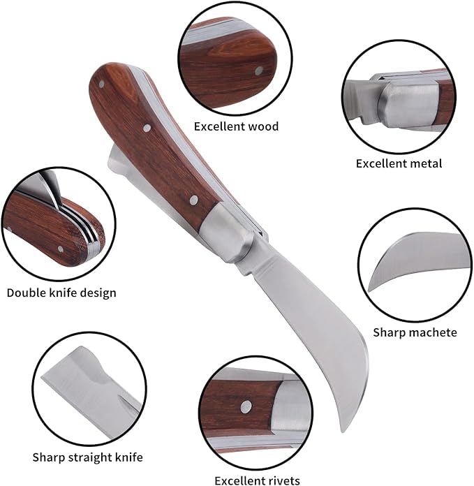 Enhance your gardening precision with the Dual Blade Grafting Knife for Plants β a versatile and foldable tool designed for both budding and pruning tasks. Made with sharp, durable stainless steel blades, this cutter ensures clean, accurate cuts ideal for grafting fruit trees, shrubs, and other delicate plant work. The ergonomic wooden handle offers a comfortable grip and a classic, sturdy feel, making it easy to handle even during extended use. Its compact, foldable design allows for safe storage and easy portability, making it a must-have tool for professional gardeners and hobbyists alike seeking reliable performance and clean results