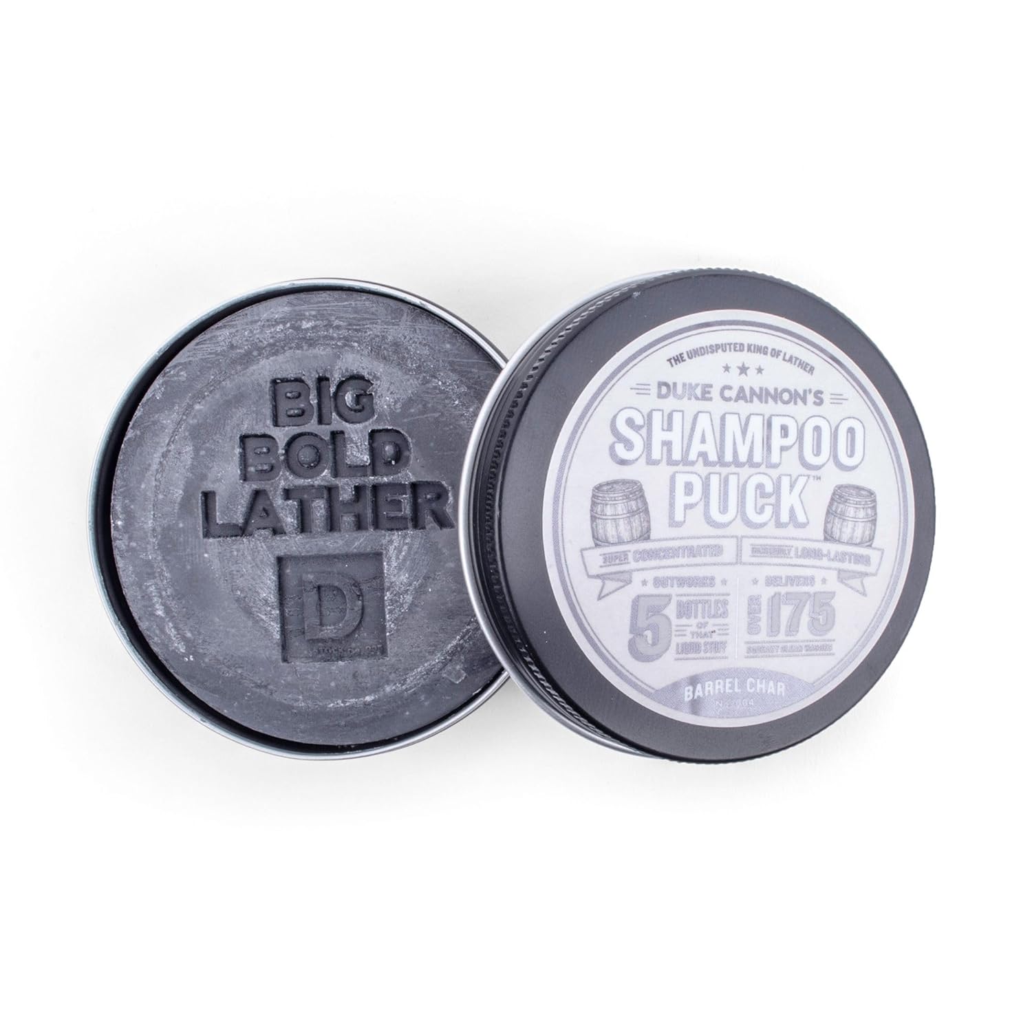 Duke Cannon'S Shampoo Puck - Barrel Char No. 004, Solid Shampoo Bar For Men, 4.5 Oz. | No Plastic Waste! Packaged In Handy Tin - Great For Travel | Tsa Approved