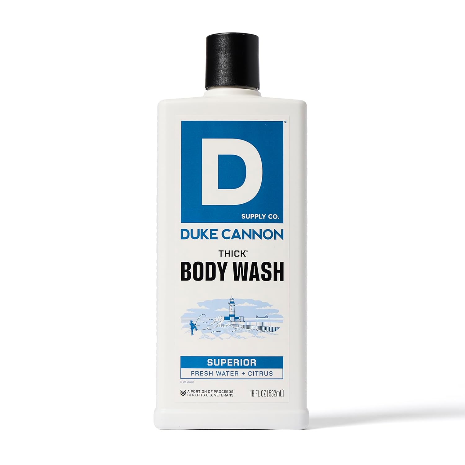 Duke Cannon Body Wash – Thick, high-viscosity formula designed for men. Cleanses dirt, sweat, and odor while moisturizing skin with a bold, highly scented formula. Perfect for daily use, athletes, and active lifestyles-tough on grime, soft on skin