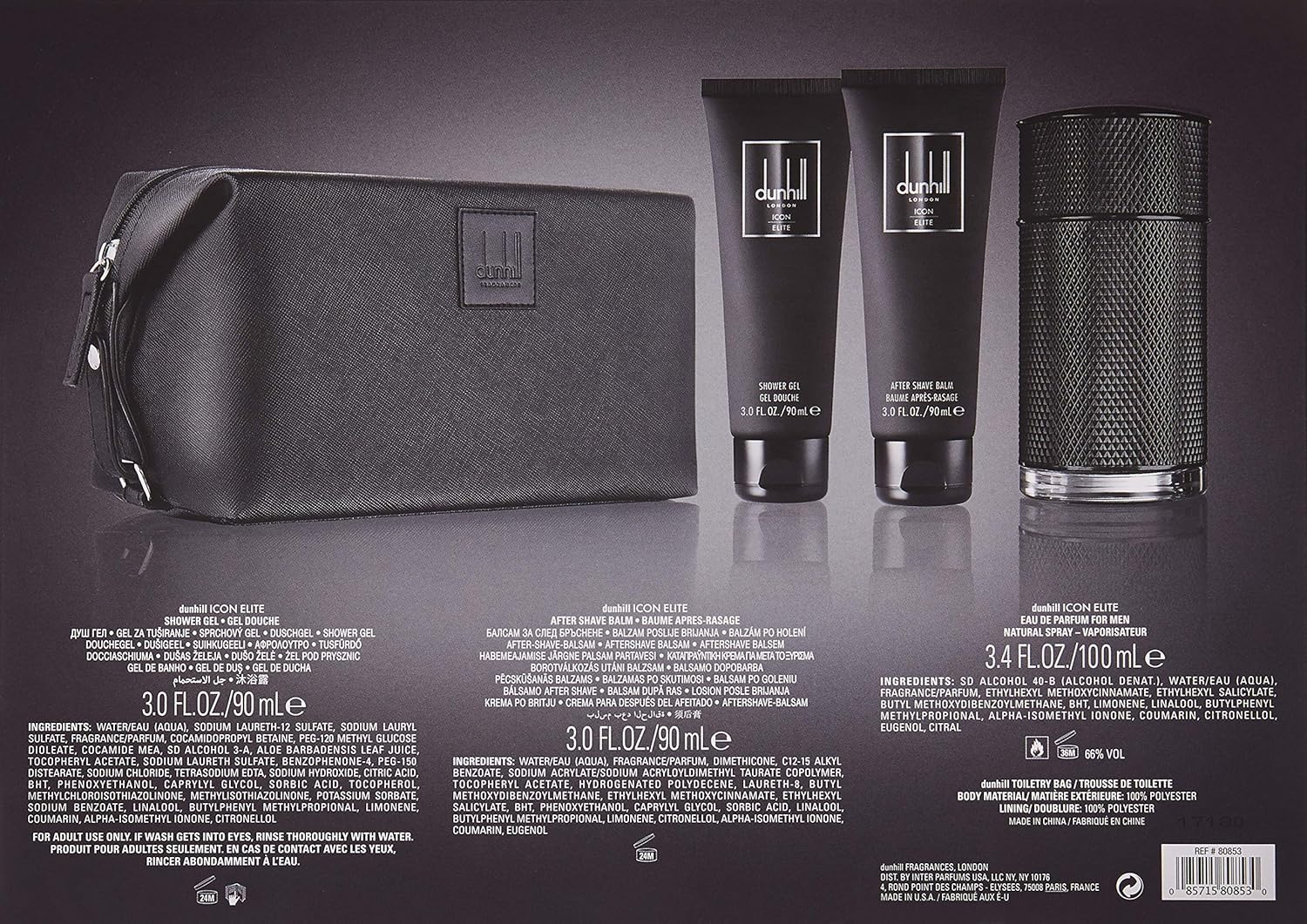 Dunhill Icon Elite For Men 4 Pc Gift Set 3.4Oz Edp Spray, 3Oz Shower Gel, 3Oz After Shave Balm, Pouch, Sandal Wood, Black Suede, 1427.0 Gram