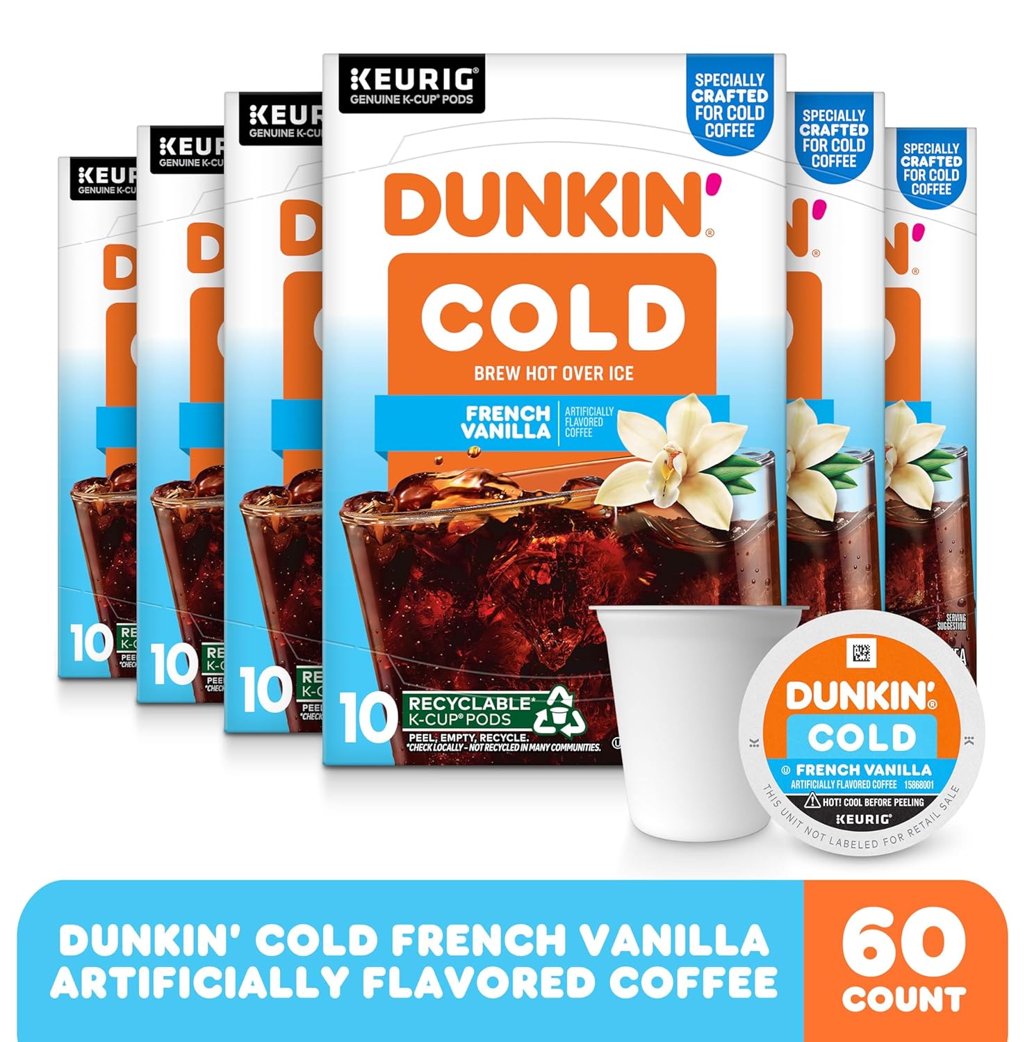 Dunkin' Cold French Vanilla Flavored Coffee, 60 Keurig K-Cups