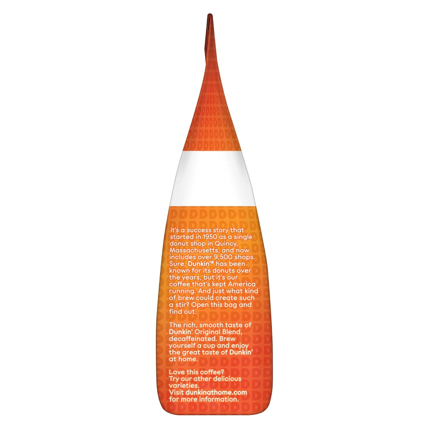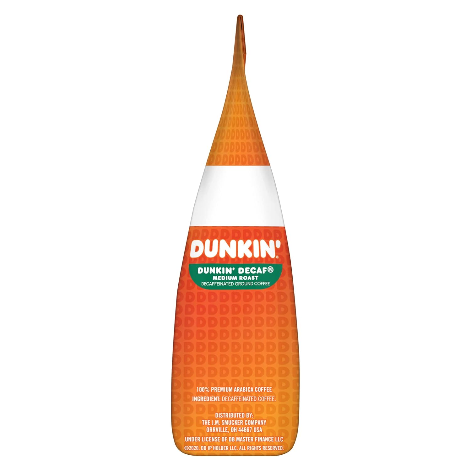 Contains one (1) 12-ounce resealable bag of Dunkin’ Decaf coffee