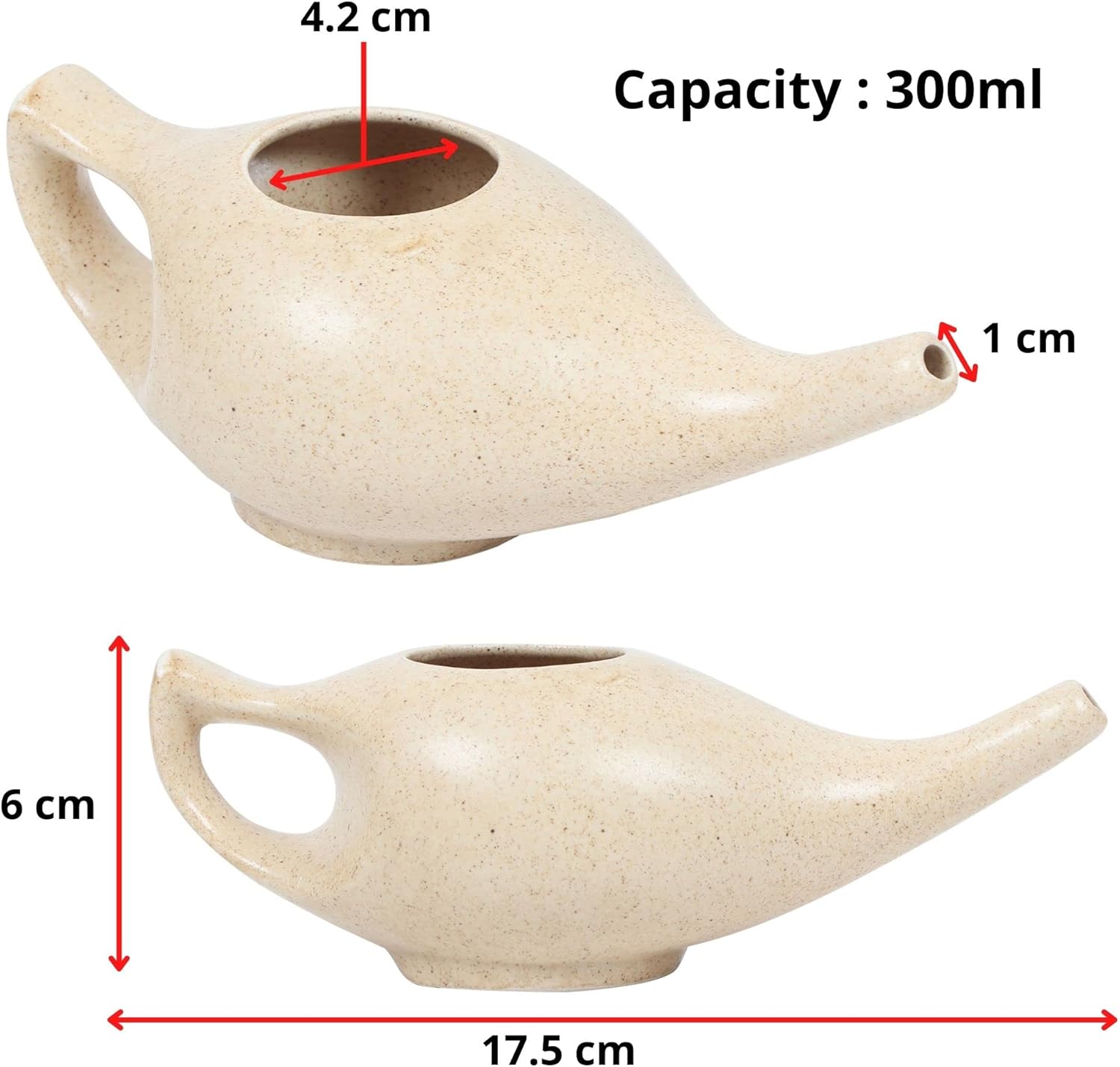 Attractive Design of Ceramic Neti Pot with no joints, leak proof (fits your nostril comfortably and creates a seal for the comfortable passage of water). It hold 230 ML water and comes with Instruction Card