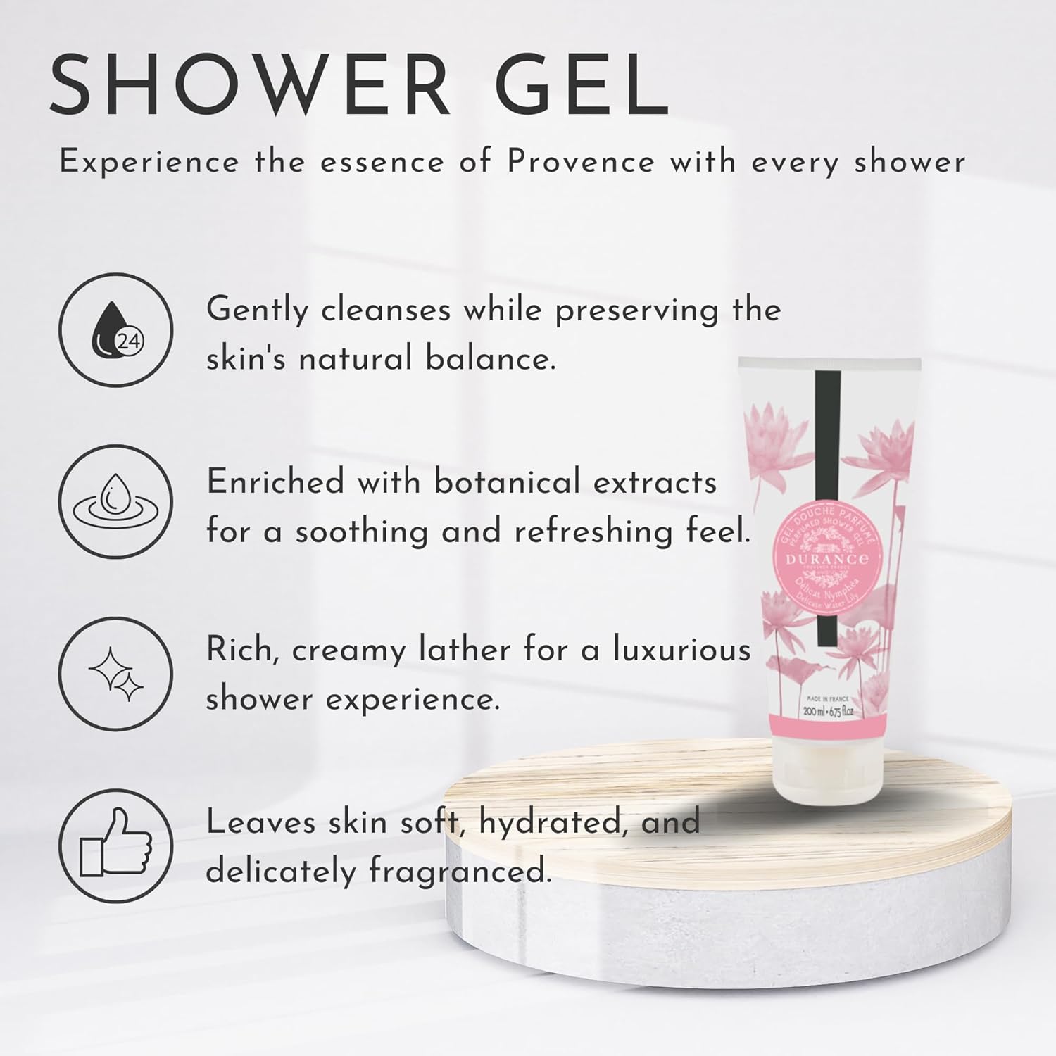 Durance Les Eternelles Natural Shower Gel For Women (200Ml) Delicate Water Lily Fragrance - Women'S Body Wash | Nourishes, Gently Cleanses, Hydrates & Softens Skin