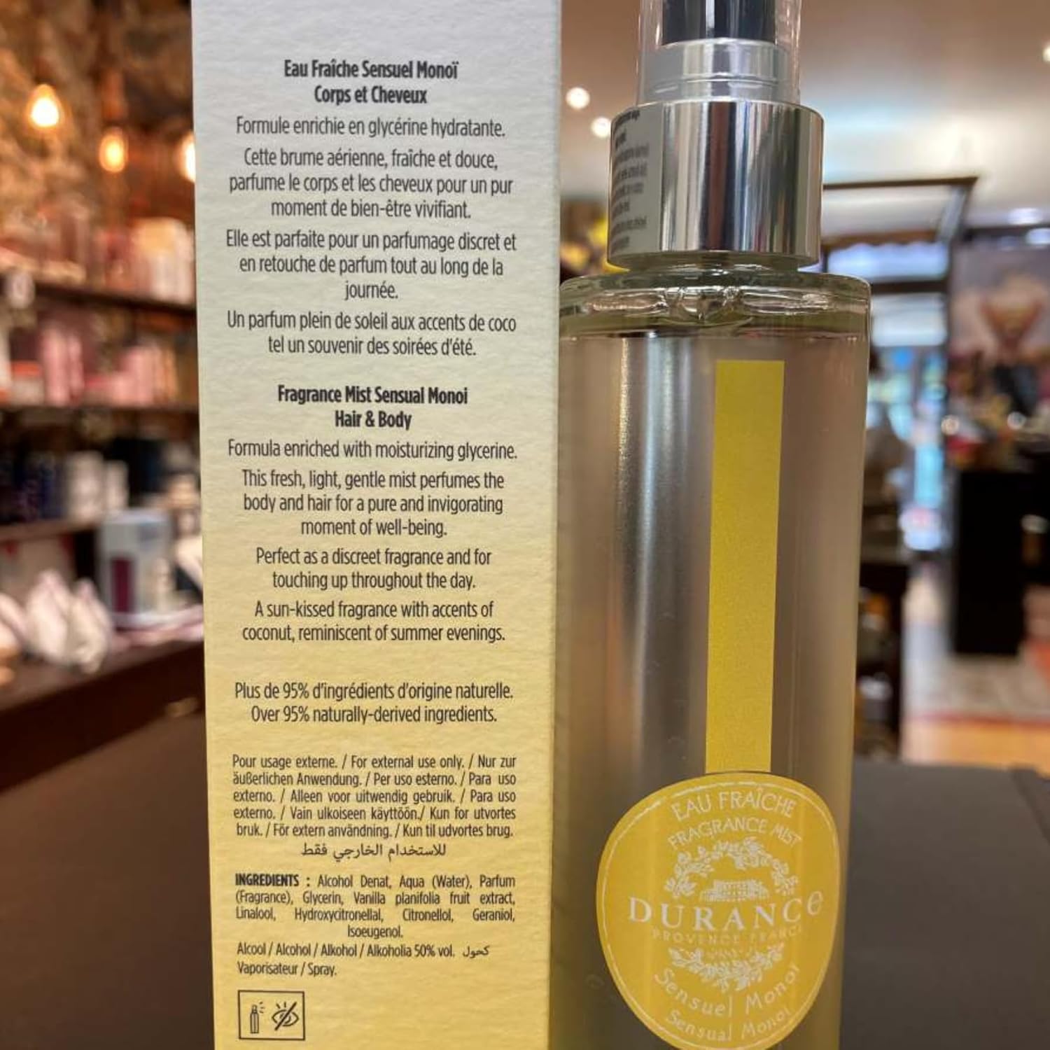 About this item Durance Fragrance Mist Sparkling Master perfumers 95% natural ingredients Non-CMR Low alcohol content Enriched with vegetable glycerin See more product details,Durance Fragrance Mist Sparkling,Master perfumers,95% natural ingredients,Non-CMR,Low alcohol content,Enriched with vegetable glycerin