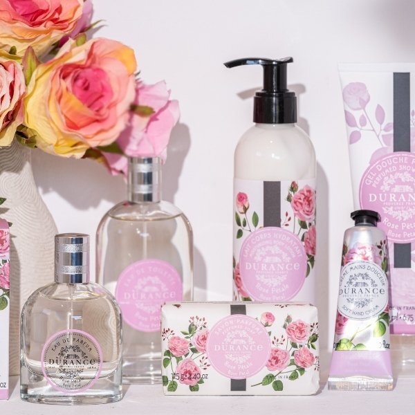 Indulge in the Luxurious Experience of Durance's Rose Petal Perfumed Soap A refined addition to your daily skincare routine. This soap gently cleanses the skin, leaving it soft and delicately scented with the elegant aroma of Centifolia Rose, reminiscent of the scented gardens of Provence. Enriched with sweet almond oil, it produces a creamy lather that nourishes and hydrates, making it suitable for all skin types. The soap is beautifully wrapped in decorative paper, reflecting Durance's commitment to combining tradition with elegance