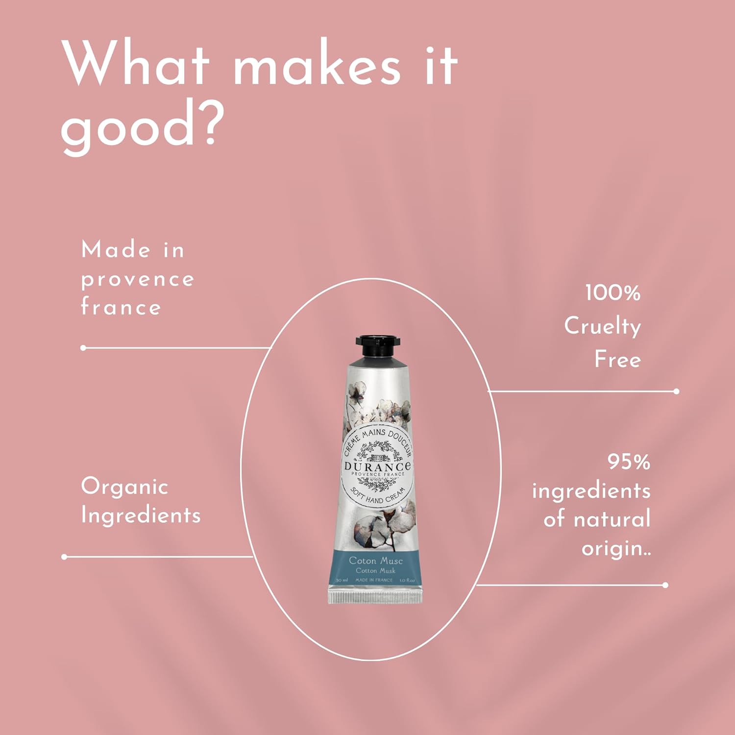 Durance Soft Hand Cream For Women (30Ml) With Cotton Musk Scent Enriched With Sweet Almond Oil | Women’S Moisturising Cream For All Skin Types