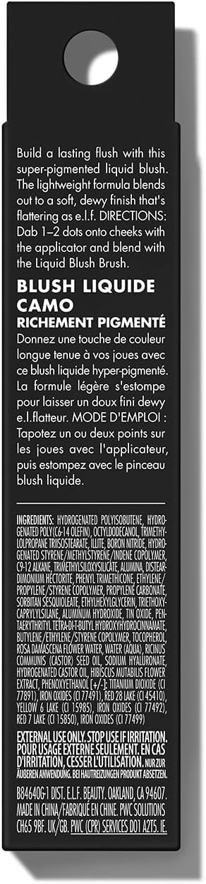 E.L.F. Camo Liquid Blush, Long-Lasting Liquid Blush For High-Pigment Color, Creates A Soft, Dewy Finish, Vegan & Cruelty-Free, Cheeky Lychee