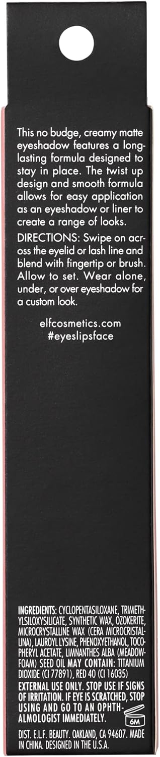 E.L.F. Cosmetics No Budge Matte Eyeshadow Stick, One-Swipe Cream Eyeshadow Stick, Long-Wear & Crease Resistant, Matte Finish, Vintage Suede