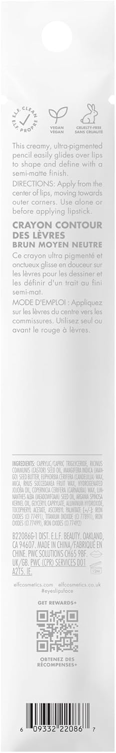 E.L.F. Cream Glide Lip Liner, Highly Pigmented Pencil For Shaping & Sculpting Lips, Semi-Matte Finish, Vegan & Cruelty-Free, Mocha Move
