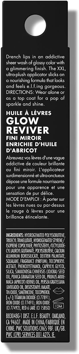 E.L.F. Glow Reviver Lip Oil Glimmer, Nourishing Tinted Lip Oil For A High-Shine Finish, Infused With Jojoba Oil, Vegan & Cruelty-Free, Citrine Gleam