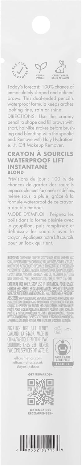 E.L.F. Instant Lift Waterproof Brow Pencil, Long-Lasting Eyebrow Pencil For Grooming & Shaping Brows, Vegan & Cruelty-Free, Taupe