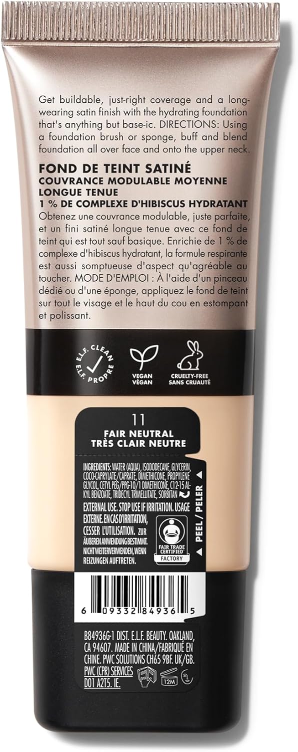 e.l.f. Soft Glam Foundation, Medium Coverage, Long-Lasting & Buildable Foundation For A Smooth, Satin Finish, Vegan & Cruelty-Free, 33 Medium Warm