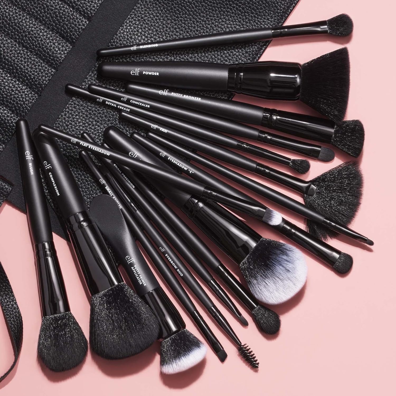 E.L.F. Ultimate Makeup Brush Set & Travel Roll, 17-Piece Brush Kit, Brushes For Eyeshadow, Foundation, Powder, Concealer & More, Vegan & Cruelty-Free