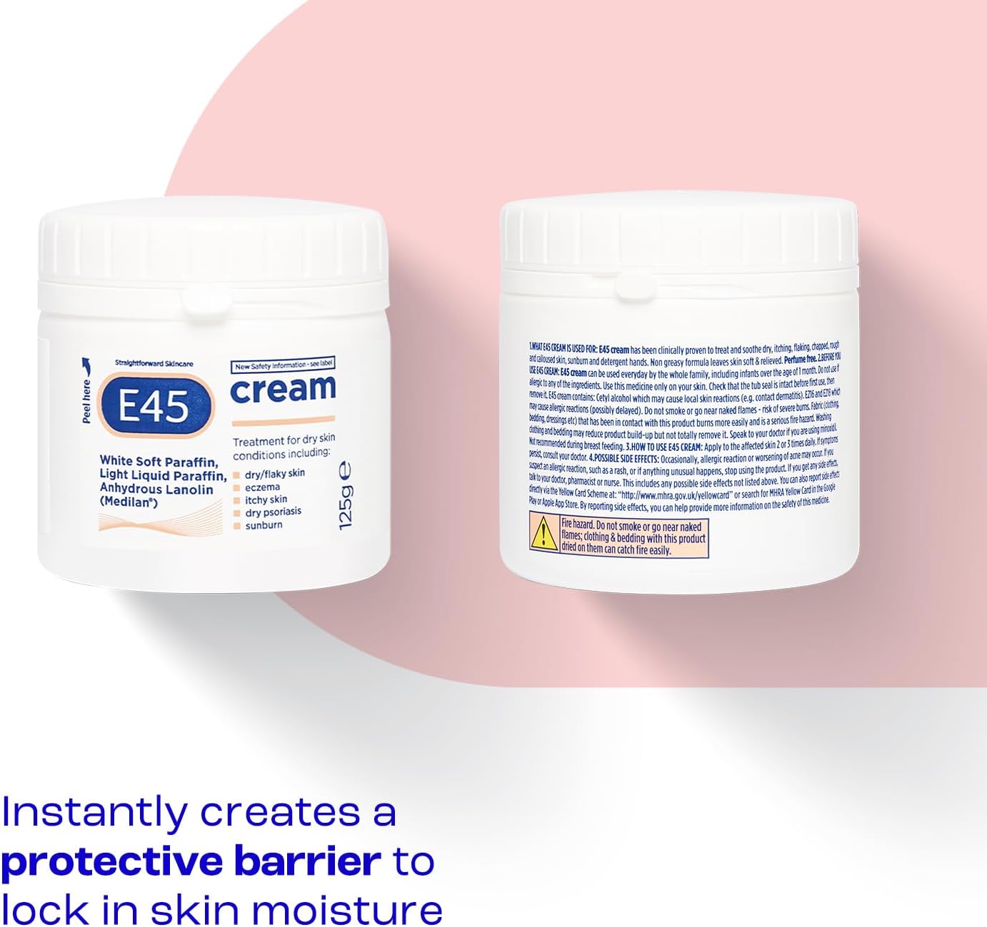 E45 Cream 125 G β Moisturiser For Dry Skin And Sensitive Skin - Emollient Body Cream To Soothe Dry And Irritated Skin - Itchy Skin, Eczema Cream - Perfume-Free Face Cream And Non-Greasy Hand Cream