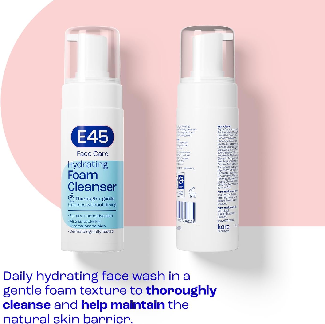 E45 Face Wash Foaming Cleanser – Daily Face Cleanser For Dry And Sensitive Skin – Gentle Facial Cleanser – Removes Excess Oil And Makeup For Clean, Soft Skin - Skin Care Facewash For Women & Mens Skin