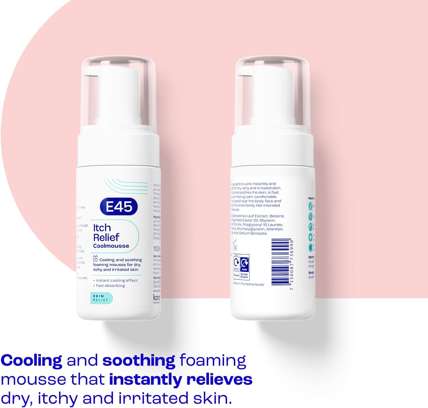 E45 Itch Relief Coolmousse 100Ml β Face And Body Foam For Dry Skin, Itchy Skin And Irritated Skin - Cooling Foam To Soothe Itchy Skin