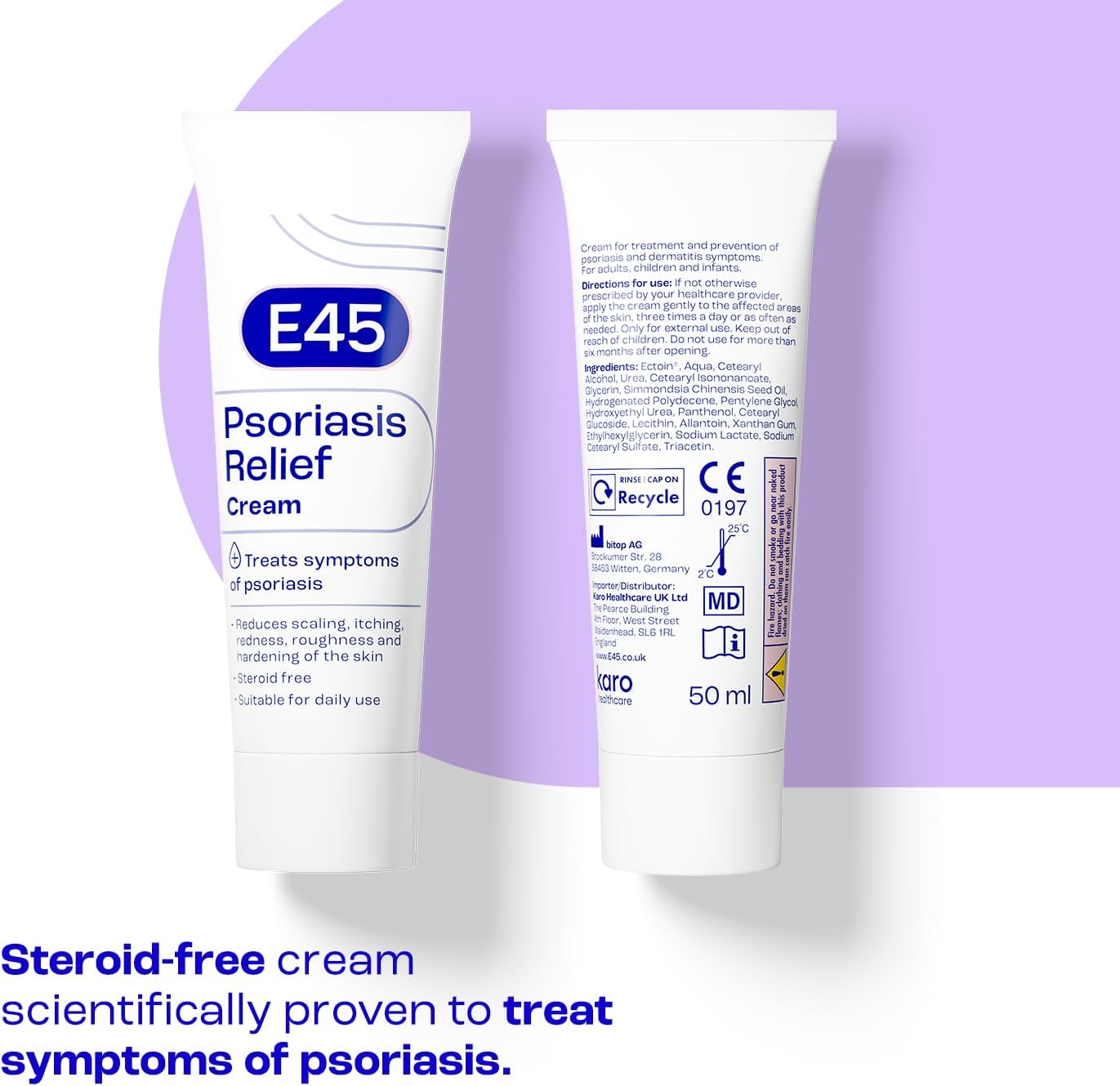E45 Psoriasis Cream 50 Ml – Treatment For Psoriasis Symptoms – To Reduce Scaling, Itching, Redness, Roughness, Dry, Hard Skin – Moisturising E45 Cream – Relieve Irritated Skin