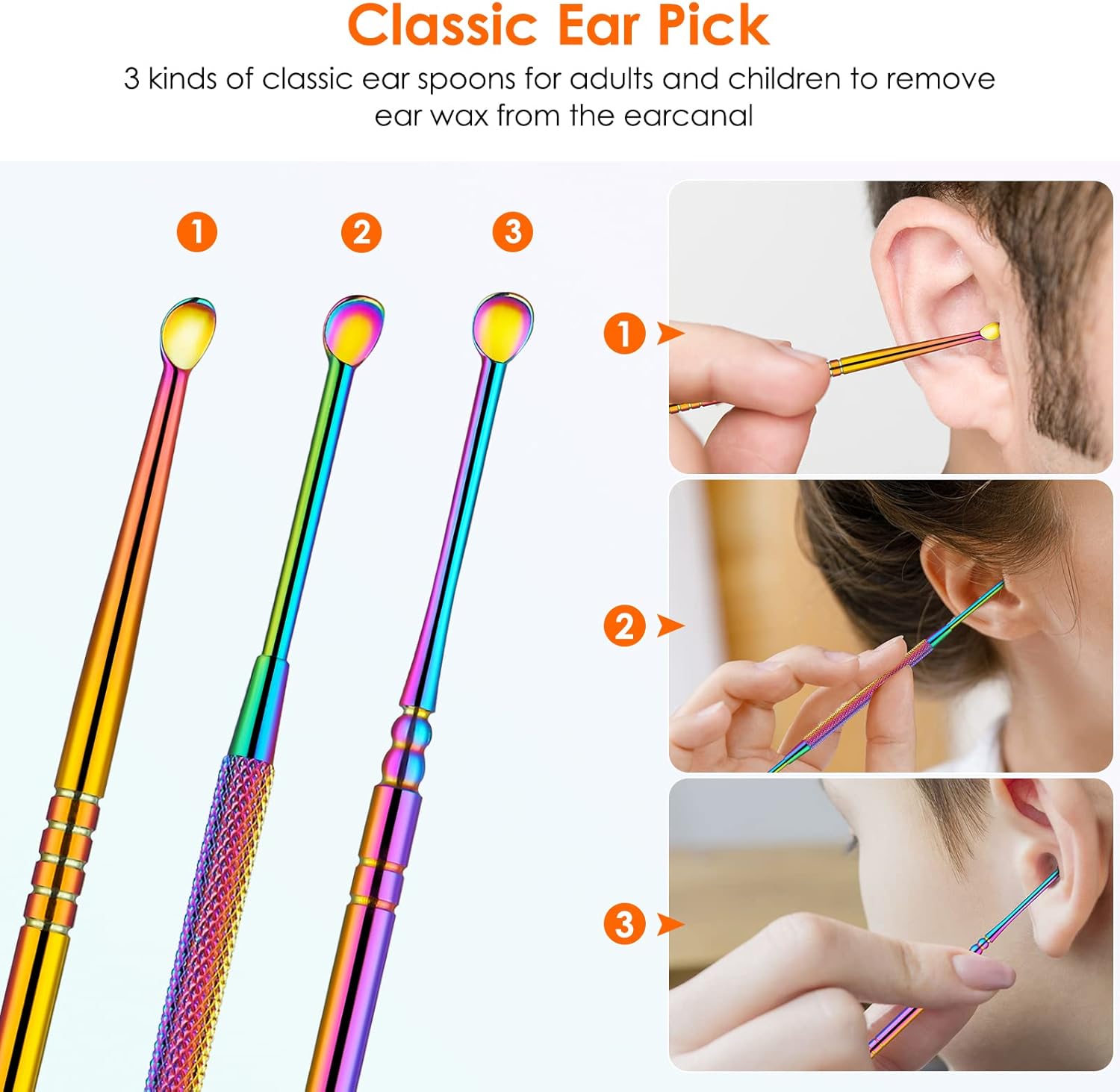 Safe Material:Nothing Is More Important Than The Safety Of Use, Our Ear Wax Removal Tools Are Made Of 410 Stainless Steel, Will Not Cause You And Your Family Ear Canal Discomfort, Ear Cleaner Earwax Removal Kit Will Not Deform With Prolonged Use